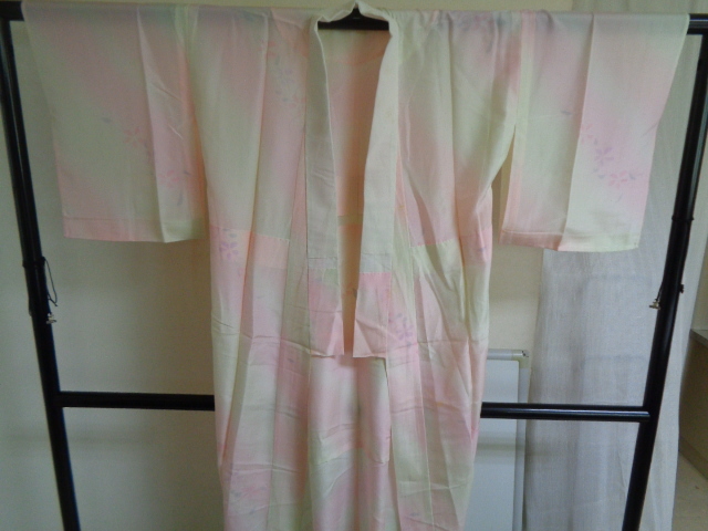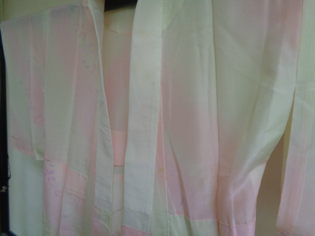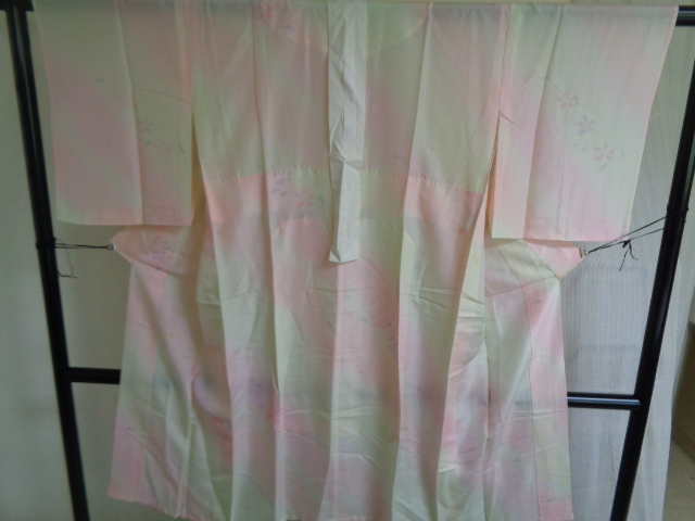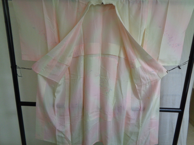 C539-80 長襦袢 半衿付き ぼかし染め 花草染文 着丈123.5センチ 裄64.5センチ