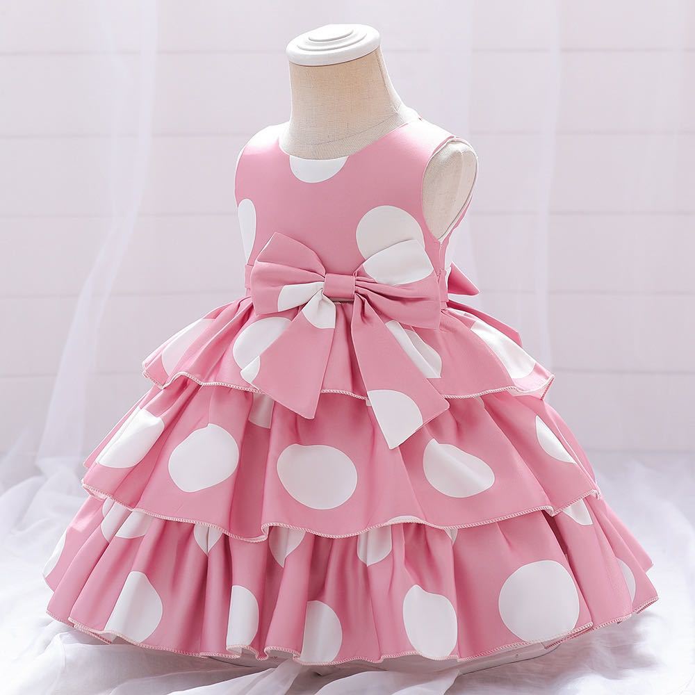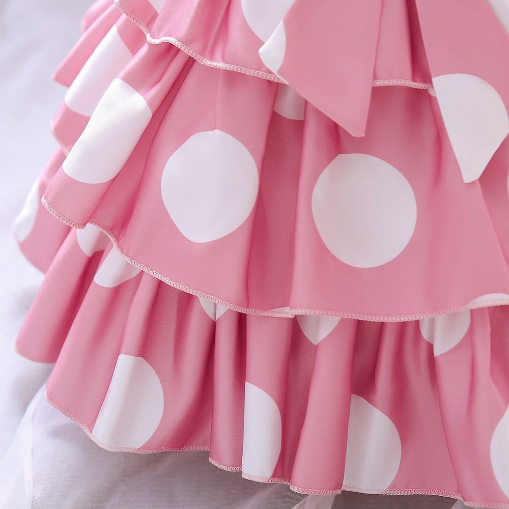 可愛い大きいドット、膝上の丈、三層とてもふんわりのドレスです。結婚式、誕生日、七五三の他、バイオリン発表会、ピアノ発表会、エレクトーン発表会などにもぴったりです。
