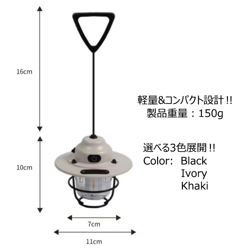 ★ランタンのサイズは10cm×10cm×9.3cm、重さが僅か150gで、軽量で持ち運びしやすいです。コンパクトで超ミニのボディながら、テント内で使用する場合、十分な光量を発揮します。取っ手がついているので夜間散歩など移動の照明としてもご使用いただけます。