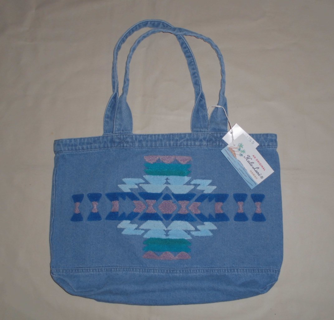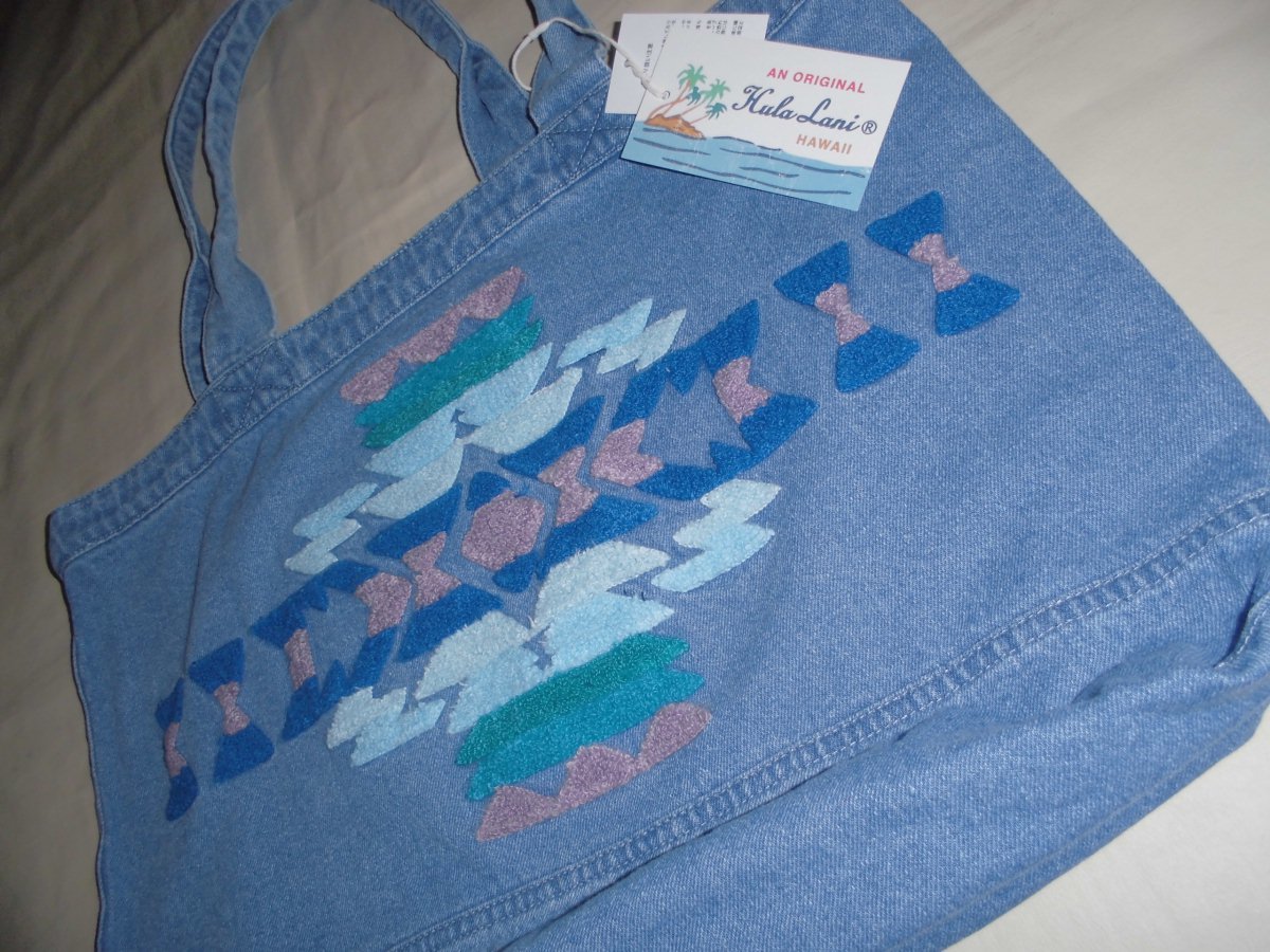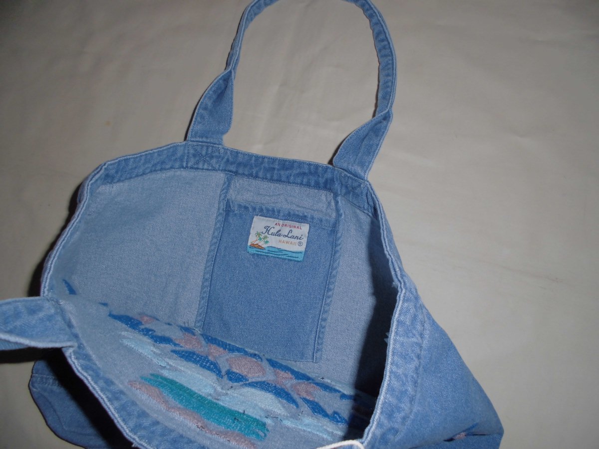 上質デニムに多色を糸で刺繍した、、丈夫で使いやすいトートバッグになっています。内側にもポケットがついてます。高さ29cm×横巾上部46cm・底部34cm×奥行(マチ)12cmぐらいの実寸です。ゆうパケット便で宜しければ送料無料で送れます。
