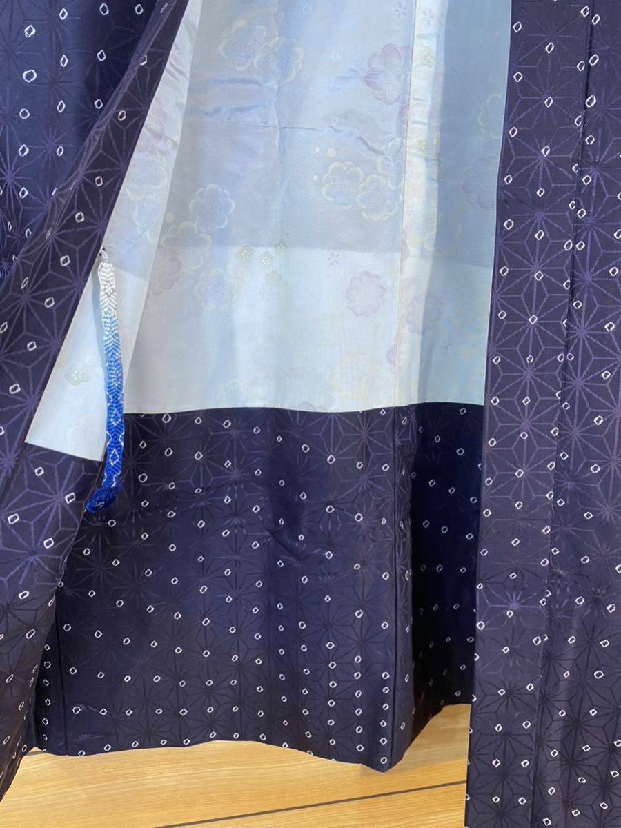 美品!中羽織 正絹 身丈75 紫 麻の葉 羽織 黒