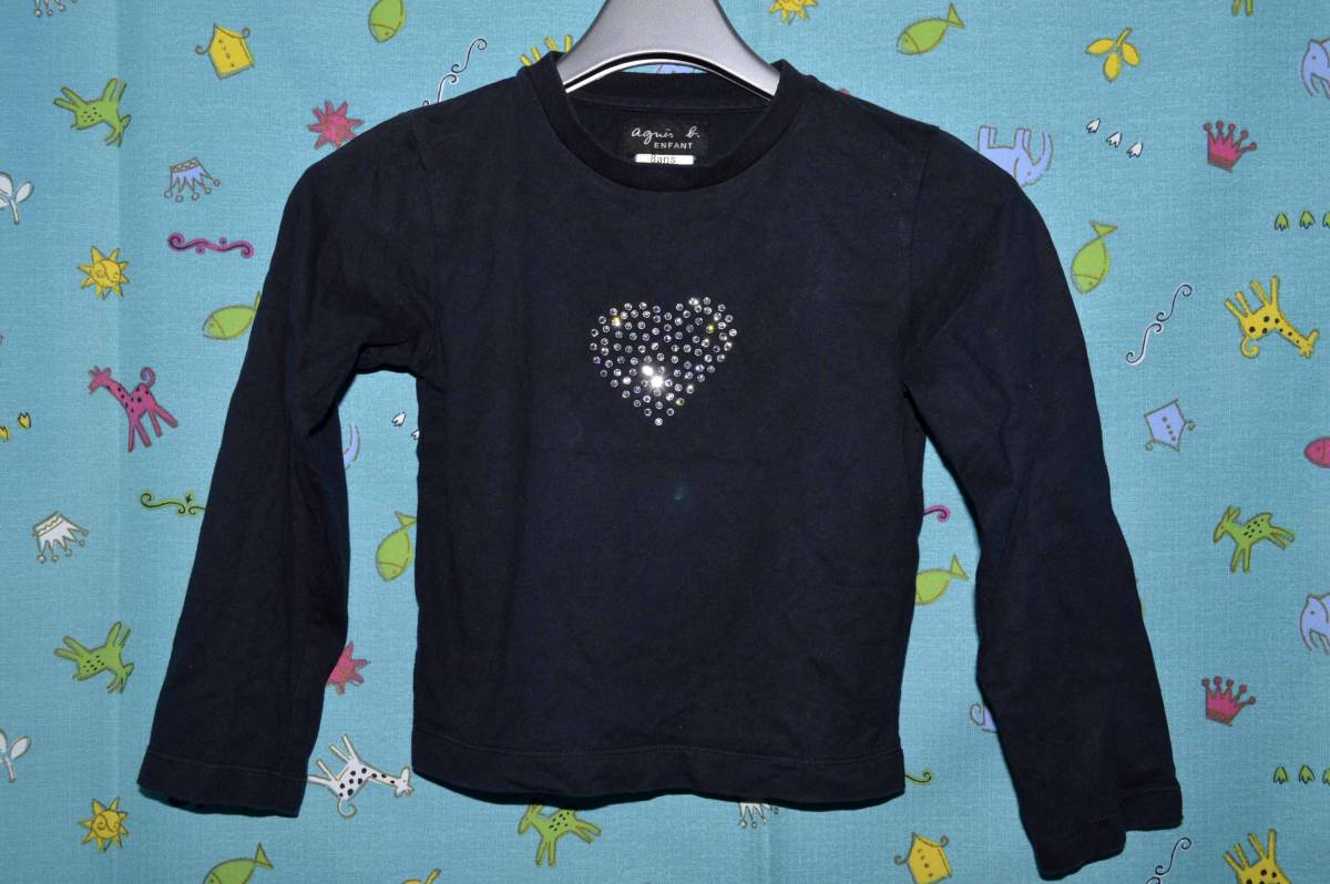 ☆商品名: agnis-b アニエスベー・ハートデザイン 長袖シャツ 黒系色 サイズ:8ans(中古)☆