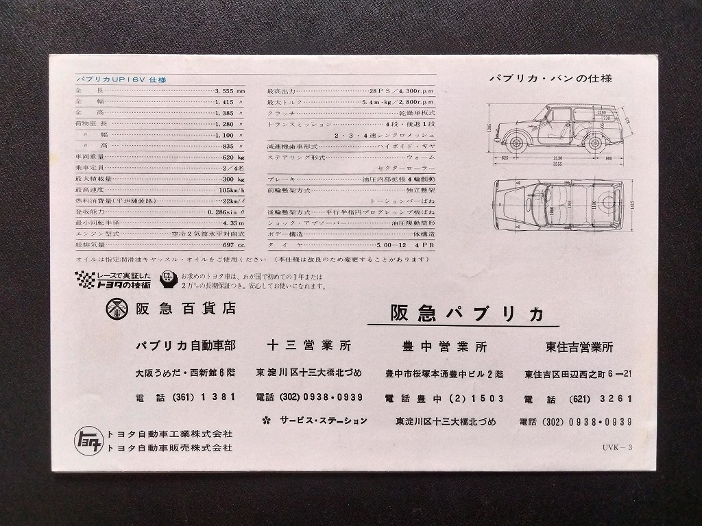 ★トヨタ ハブリカ バン 専用カタログ 1960年代 当時品!☆ TOYOTA PUBLICA VAN 700cc UP16V 空冷2気筒 水平対向