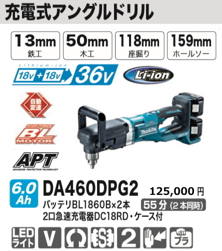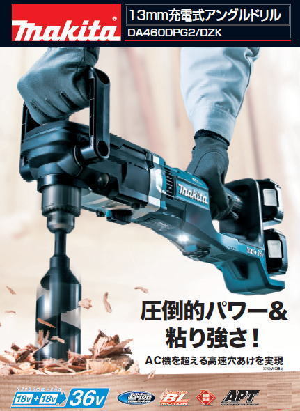 マキタ 13mm 充電式アングルドリル DA460DPG2 【18Vx2本=36V】