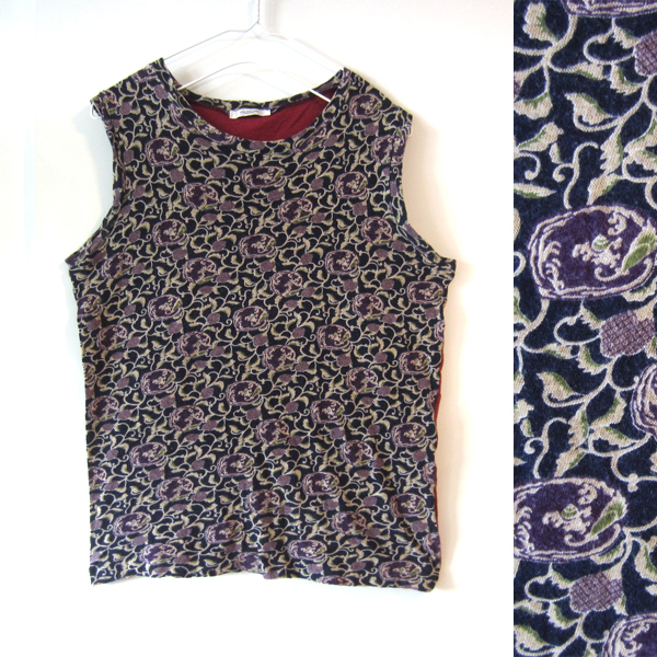 美品 プードゥドゥ POU DOU DOU  絵柄が美しいタンクトップ 裏表切り替え