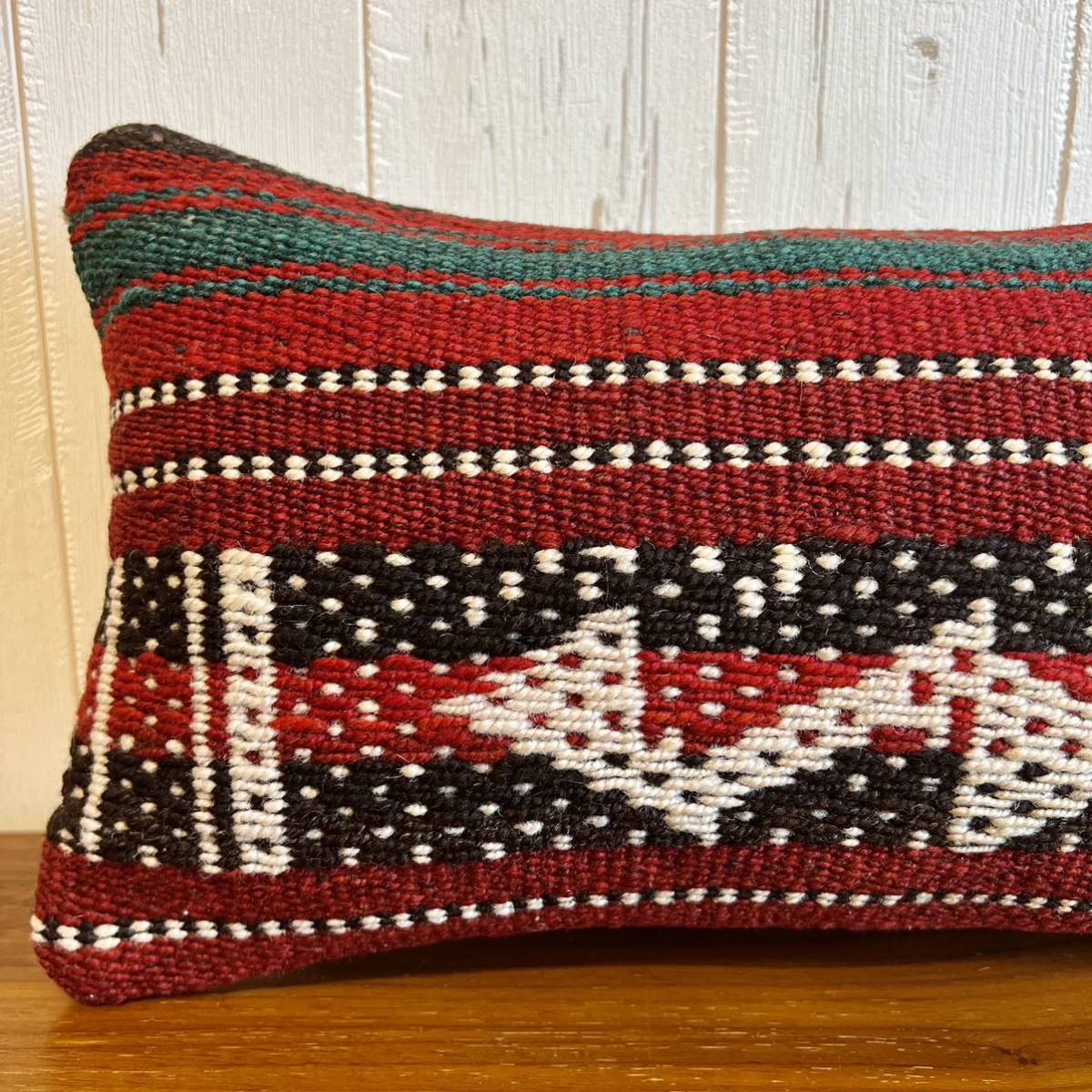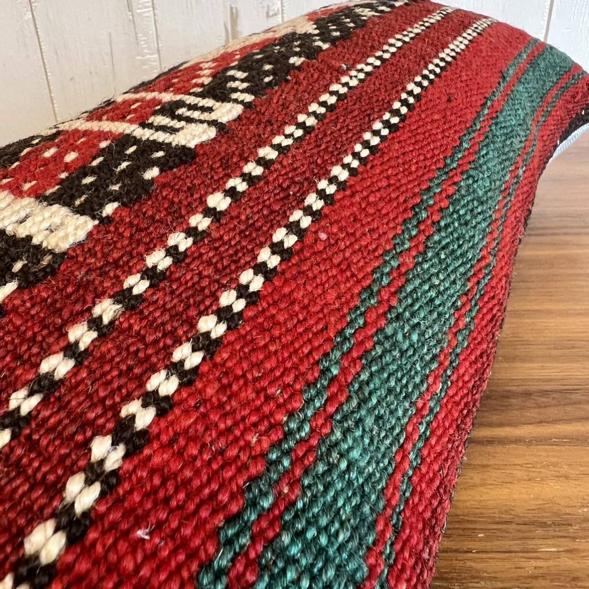 全て手織りのオールドキリムを使っておりますので多少の歪みや、修理の跡があるものがございます。