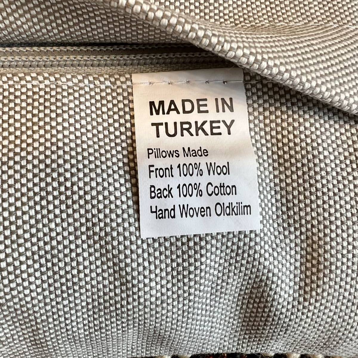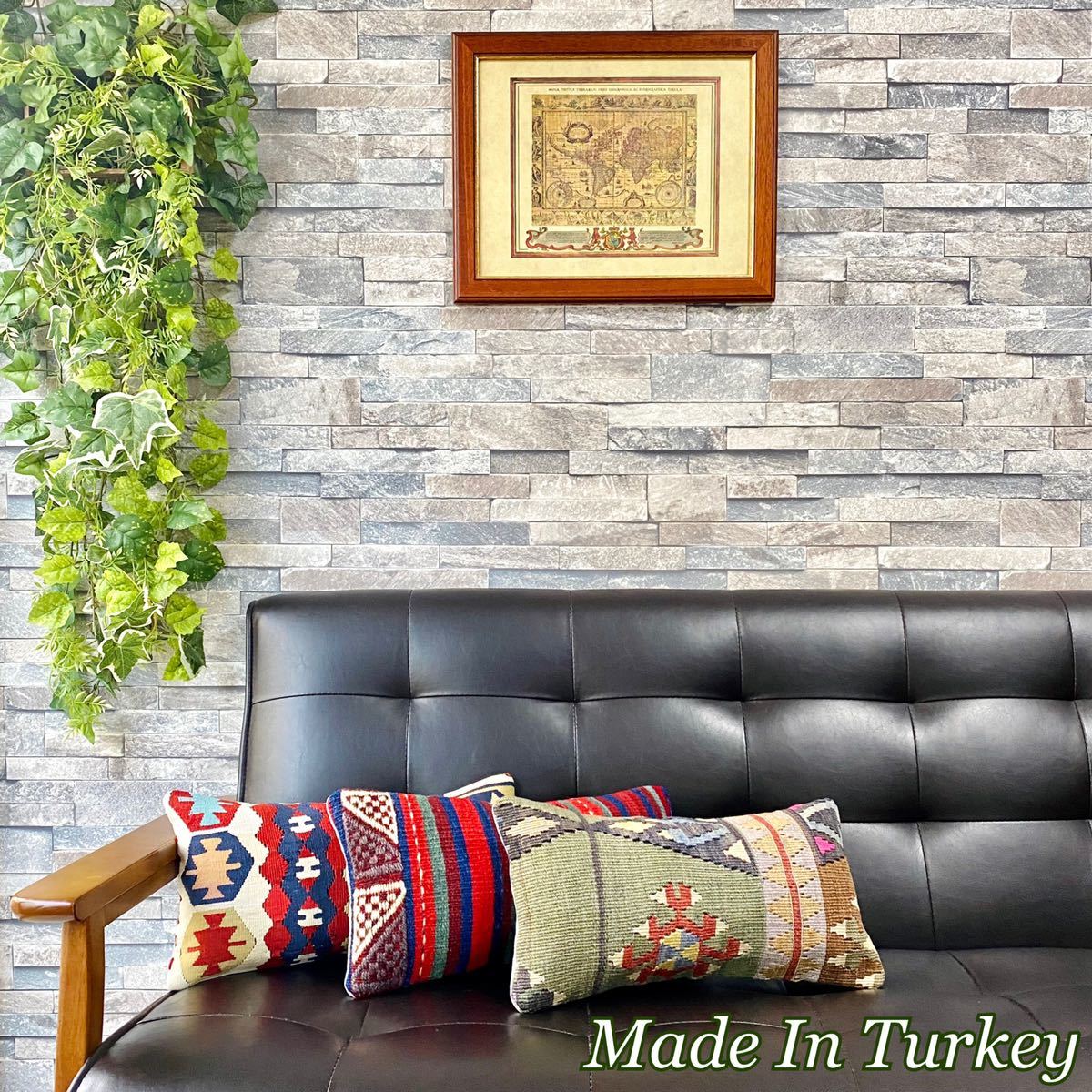 イスタンブール郊外の工房から受け取った状態ですが、絨毯はアナトリア地方のオールドキリムを使用したアンティークのため味があります。
