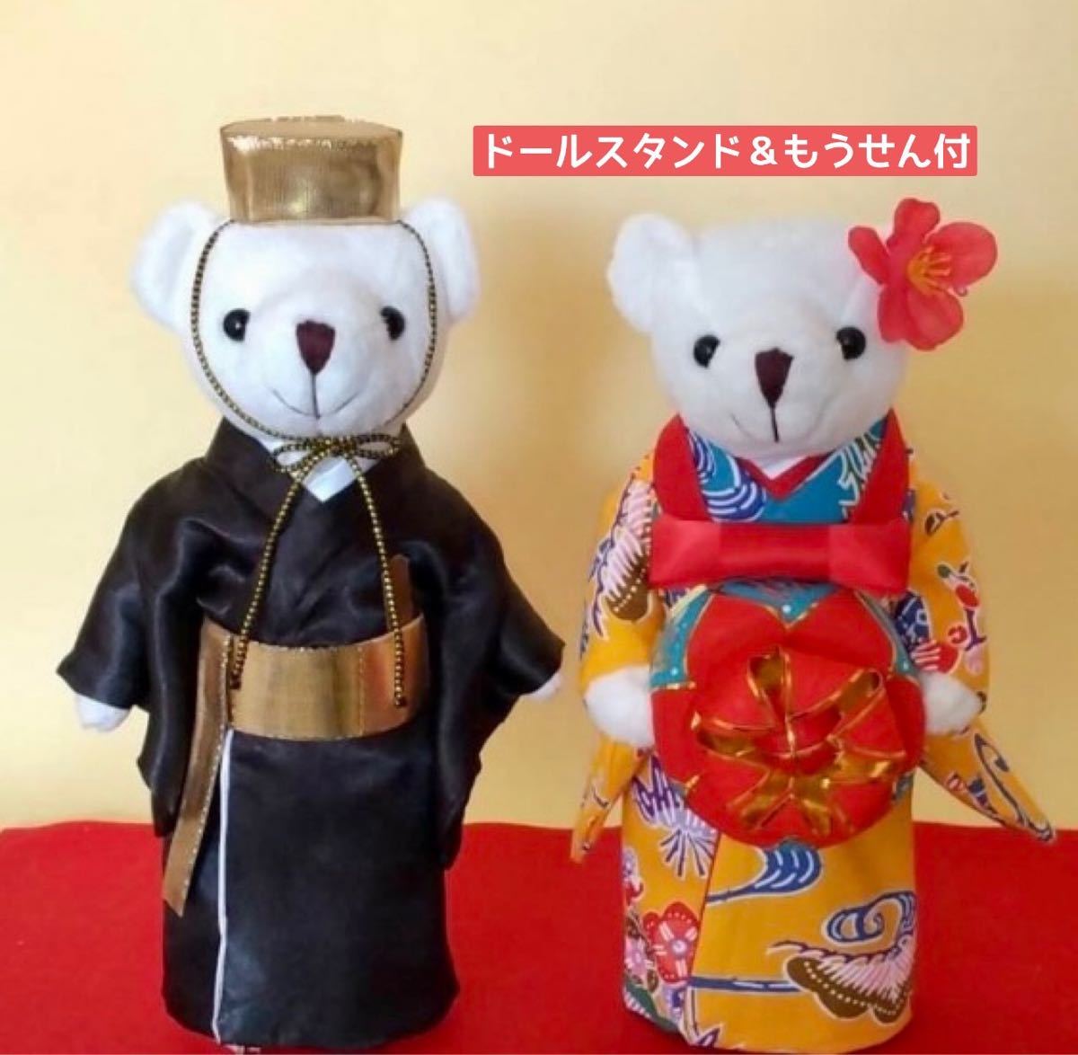 沖縄の伝統的衣装、琉装を着たハンドメイド、オリジナルのウェディングベア(くま)です。