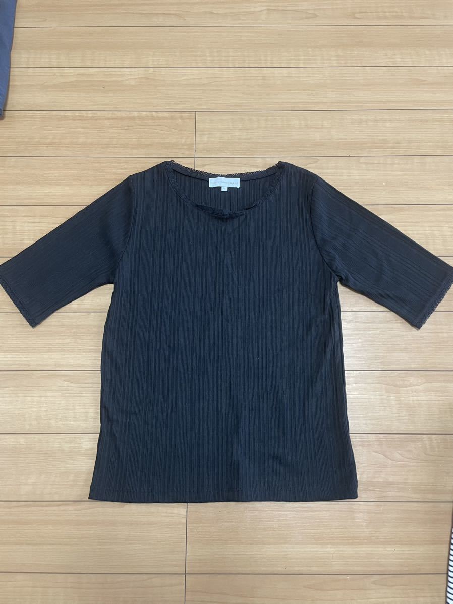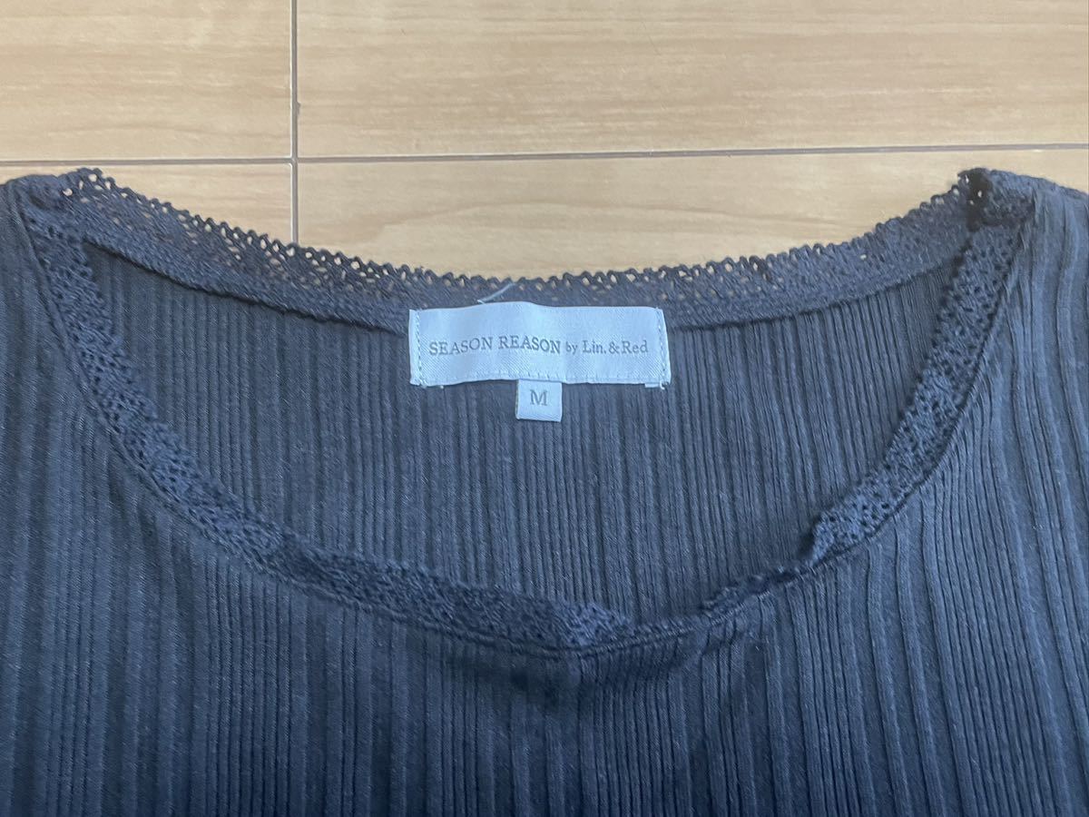 ・SEASON REASON 半袖リブTシャツ、M、ブラック、着丈約60cm