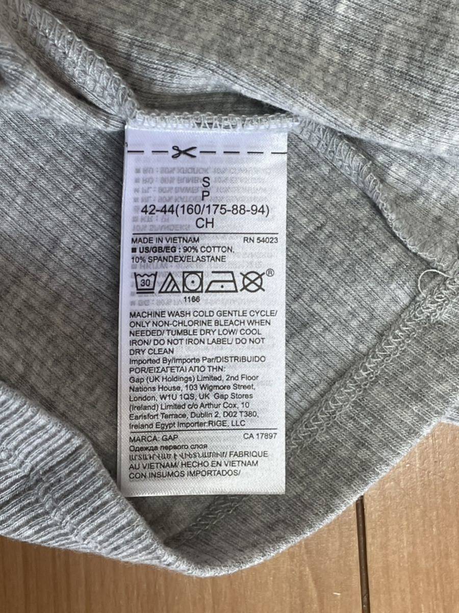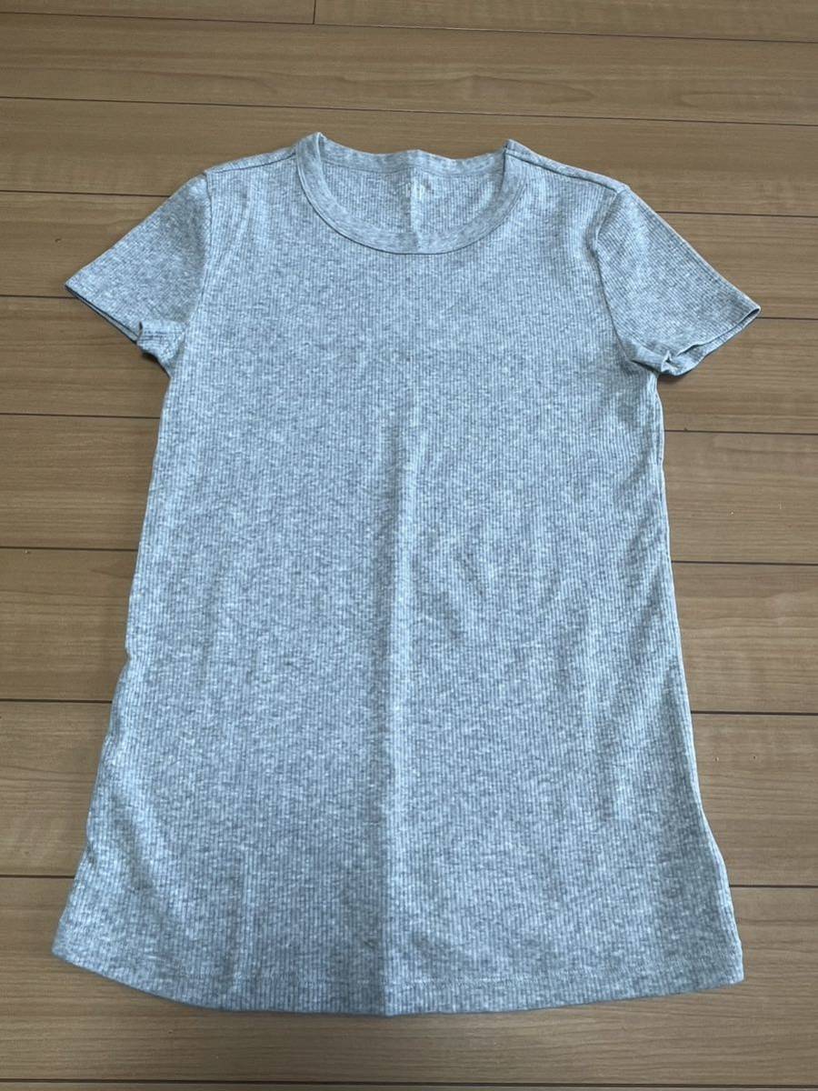 ・GAP、半袖リブTシャツ、S、グレー、着丈約63cm