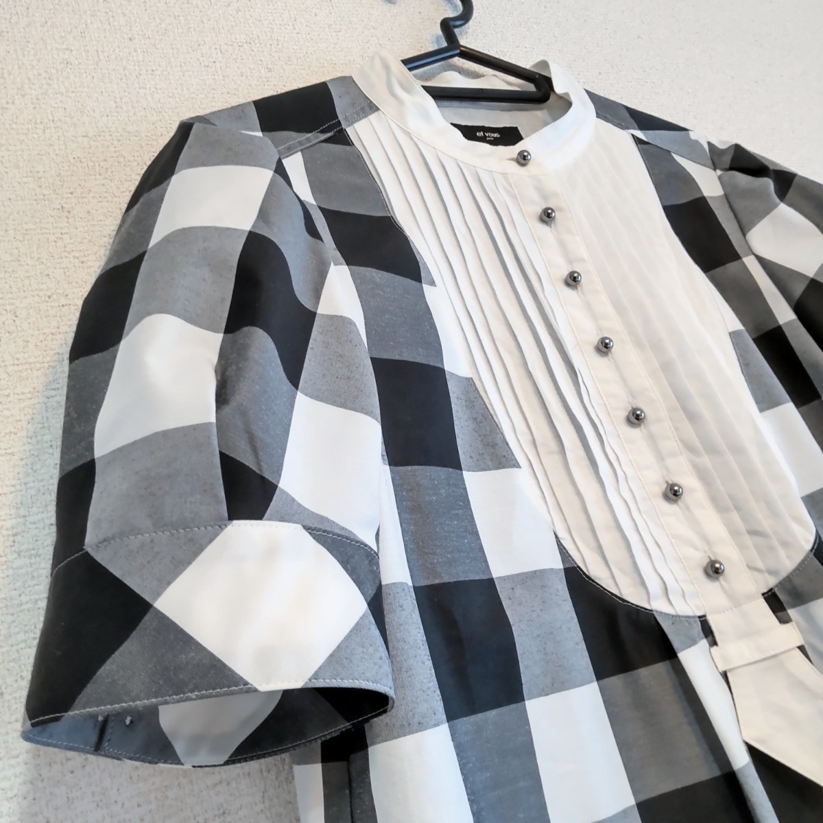 ボタンやタックや胸元のプリーツとギンガムチェックの組み合わせが、とても上品で素敵です♪