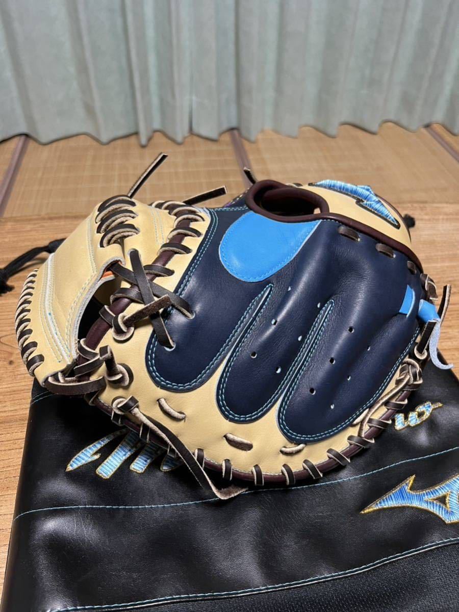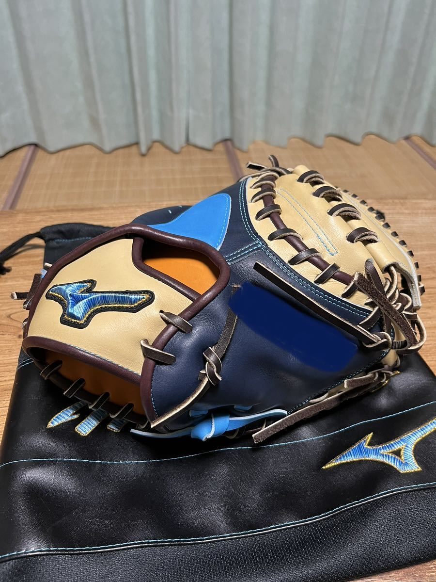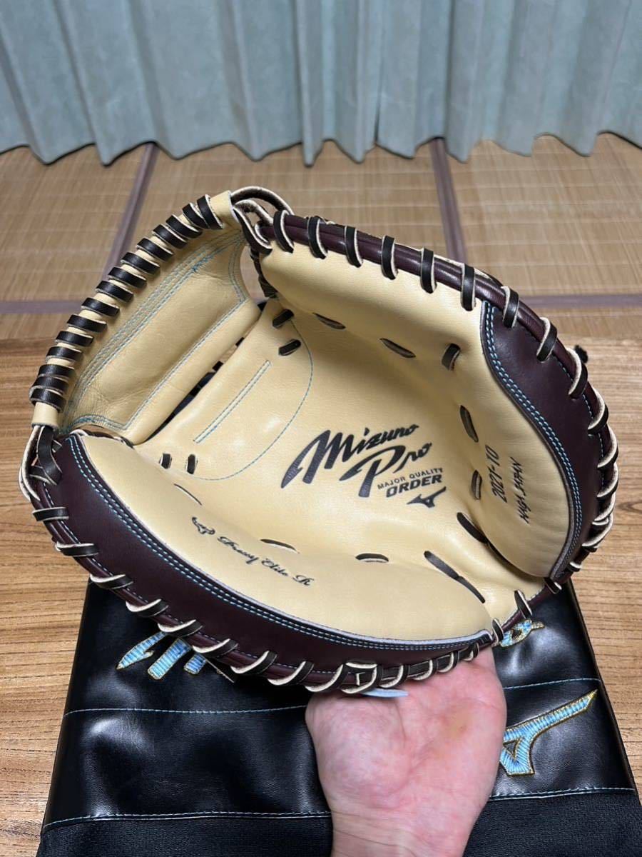 ミズノプロのオーダーキャッチャーミットです。直射日光や湿気を避けて保管していましたが、今後も使用の機会がありませんので、出品するに至りました。