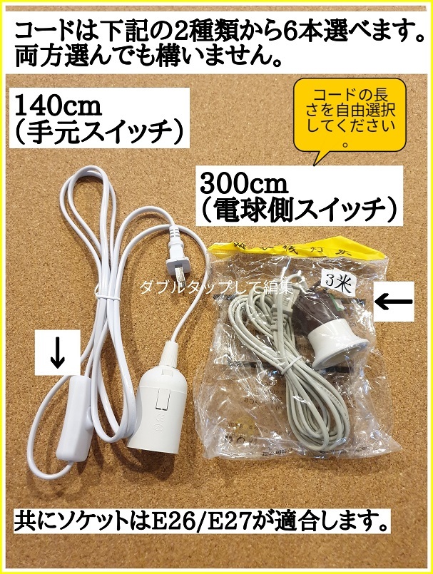 ソケット付きコード6180cm300cm 選択可 (指定がなければすべて180㎝を送ります。)