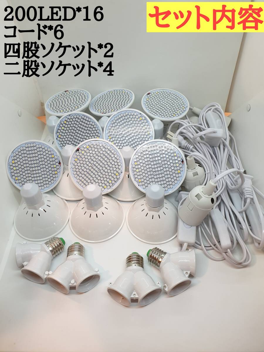植物育成ledライトセット 200ledライト16個 コード6本 ソケット6
