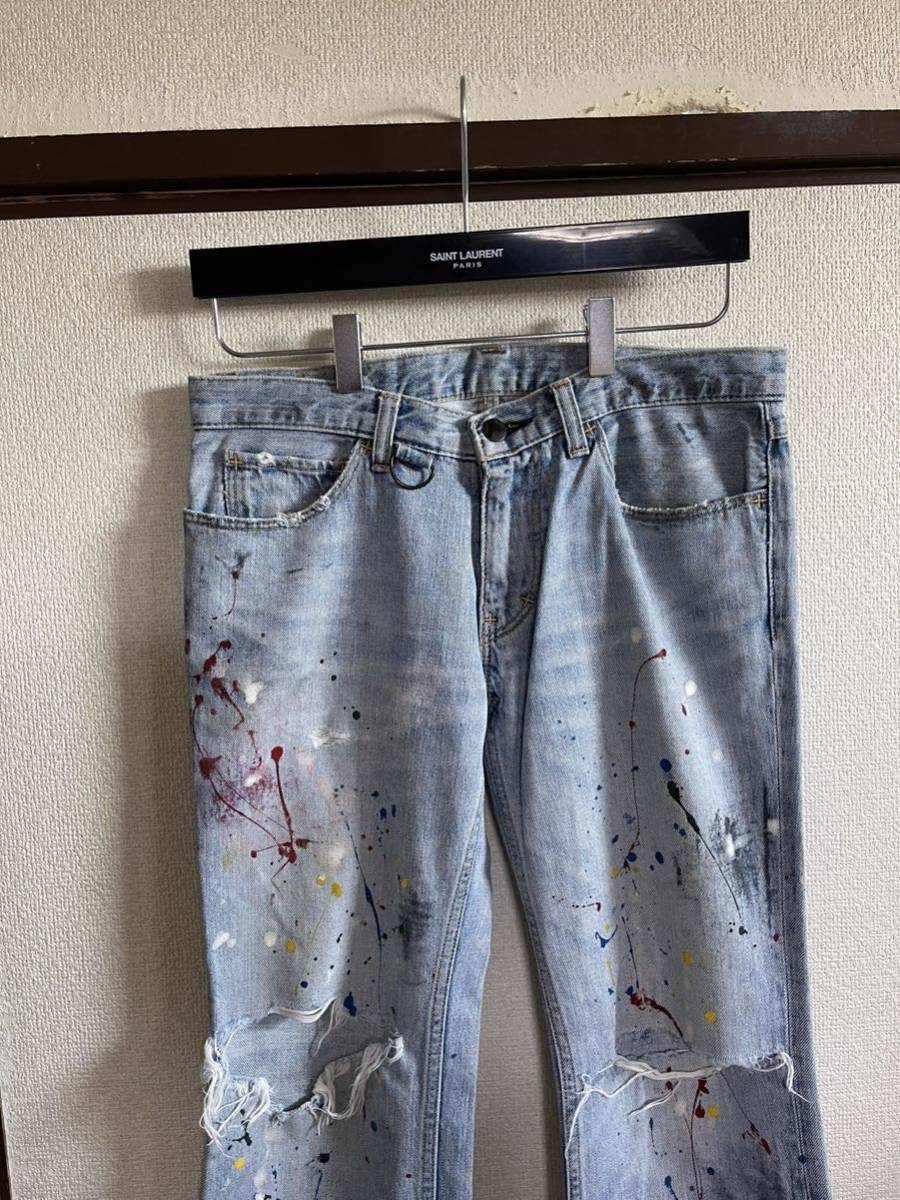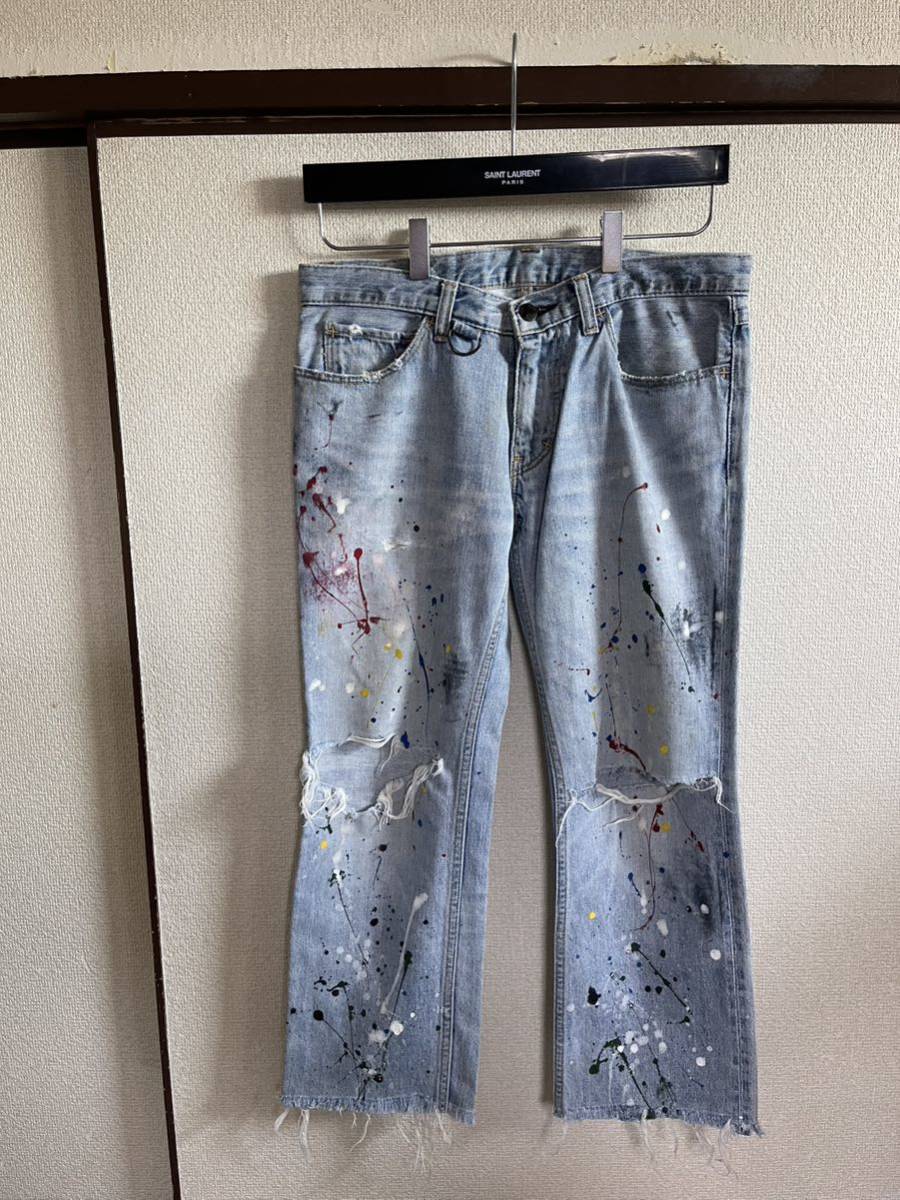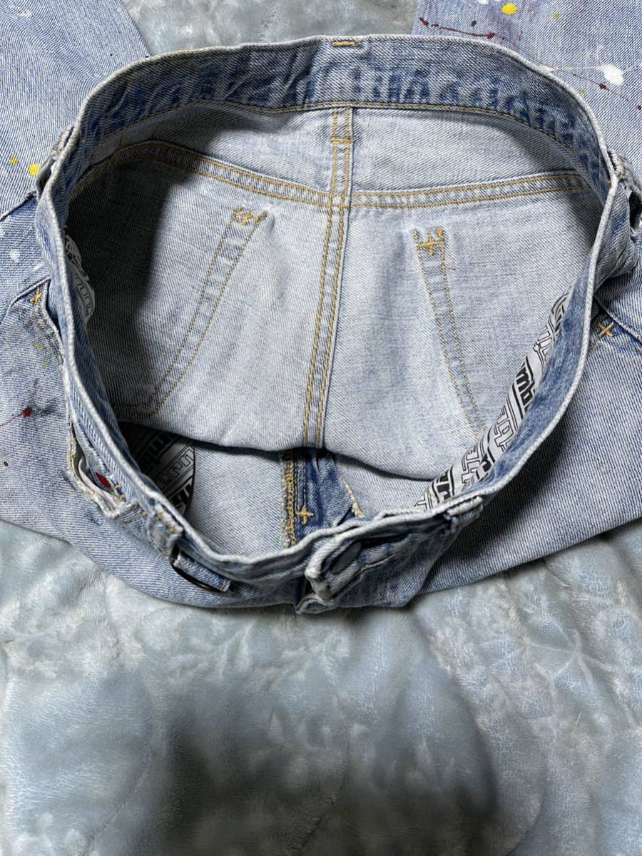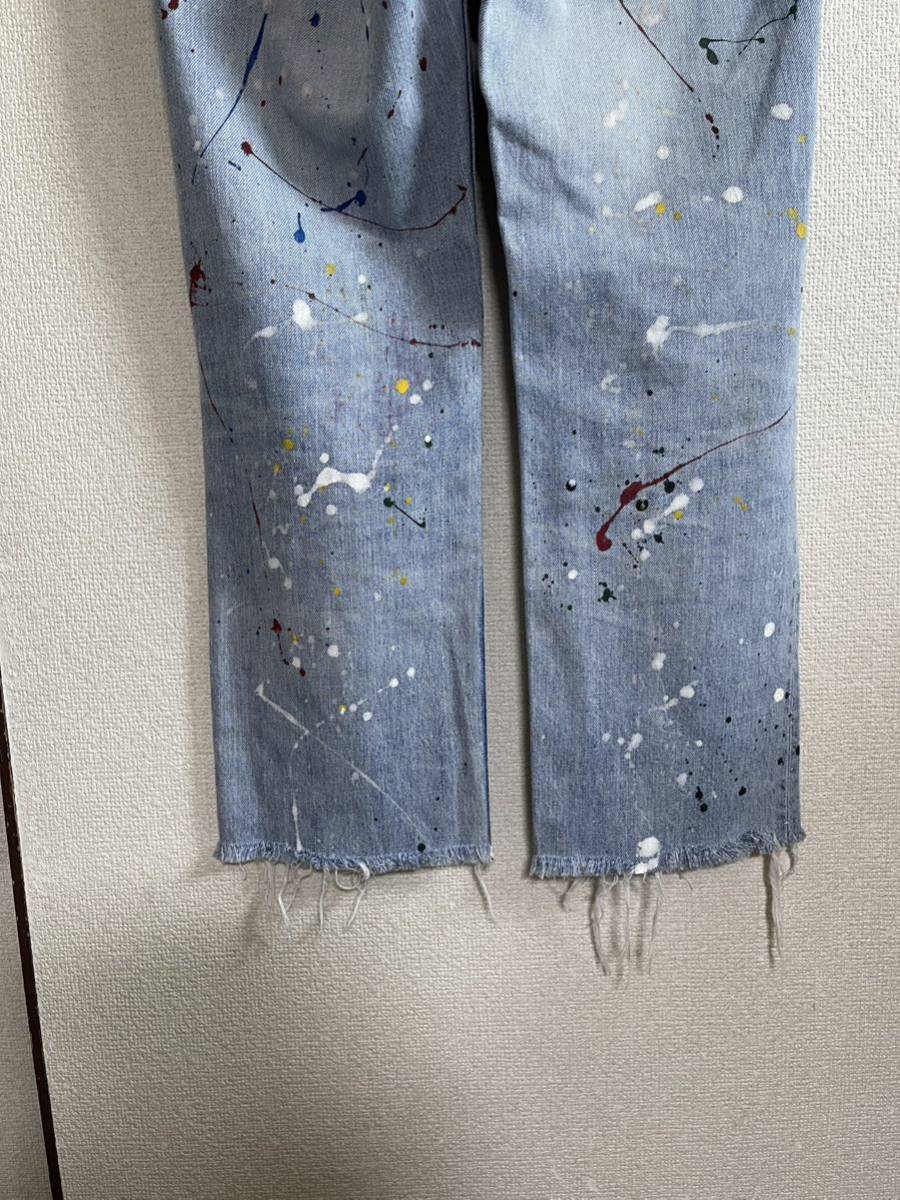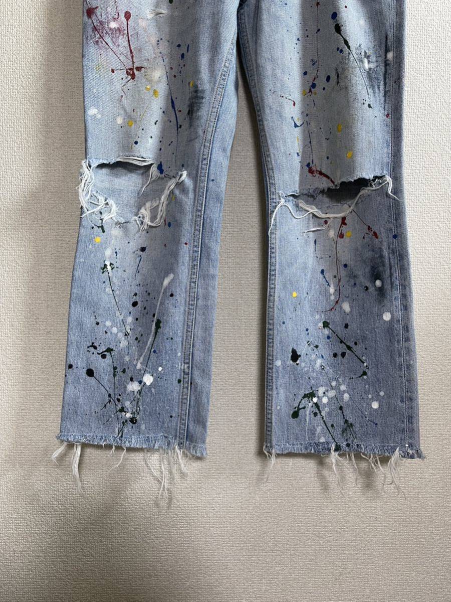 元々の加工があり、ユーズドやダメージやペンキなどがございますが着用に問題はなく、まだまだ使って頂ける商品になります。