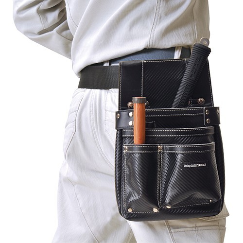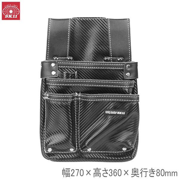 SK11 カーボンレザー 釘袋 SK-CLK 黒工具入れ 幅270×高さ360×奥行き80mm 工具袋 大工 道具 ツールバック