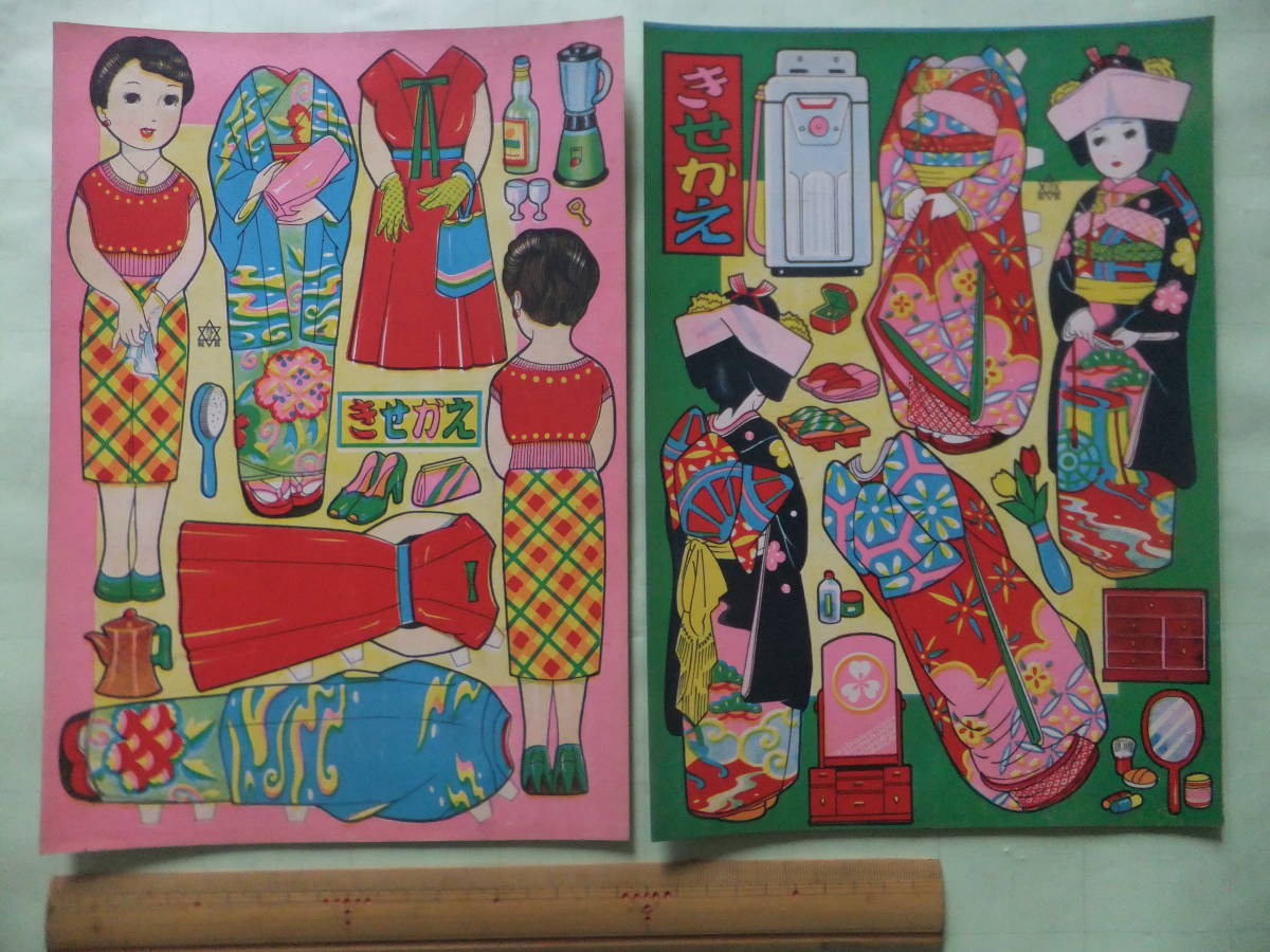 | ★三丁目の夕日★昭和レトロ 昭和30年代の駄菓子屋 超貴重なレトロなきせかえ 当時物 着せ替え 8種 紙物 8枚セット! |