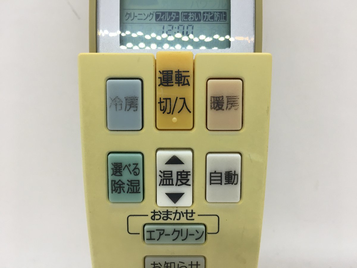 (エアコンリモコンの場合、正面からだとディスプレイ表示が薄い仕様のものもございます。不具合ではございません。)