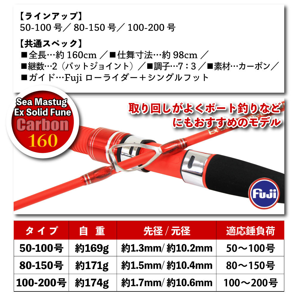 カーボンソリッド船竿 Seamastug Ex Solid Fune Carbon 160(80-150号)(ori-exc160-780698)
