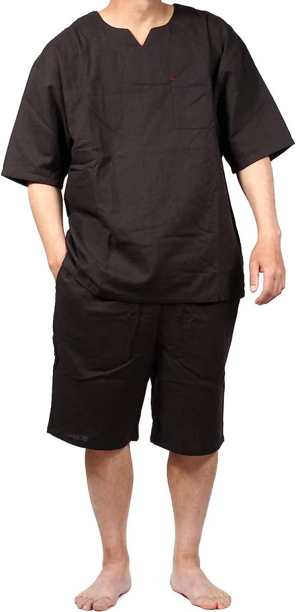 ブラック ダブルガーゼ コットン 綿 大きいサイズ 3L ハーフパンツ 敏感肌 メンズ パジャマ ルームウェア ゆったり 半袖 吸汗 通気 部屋着