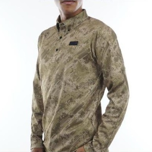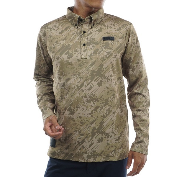 プーマ ゴルフ EGW AOP 長袖 ポロシャツ XLサイズ 定価23100円 カーキ系 ボタンダウン 吸水速乾 吸湿放湿 UV エクセレントゴルフウェア