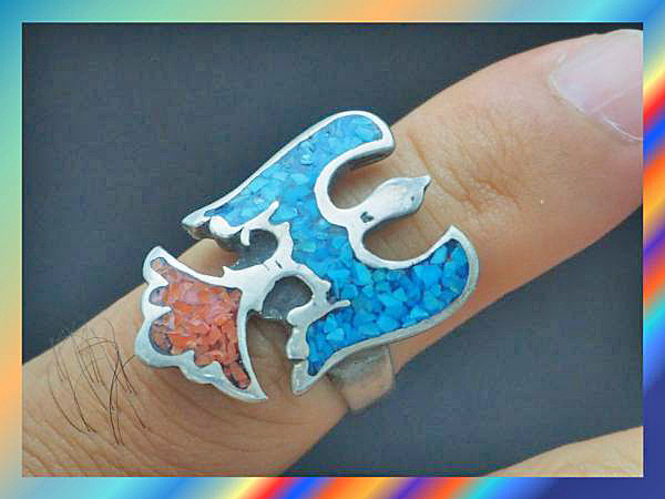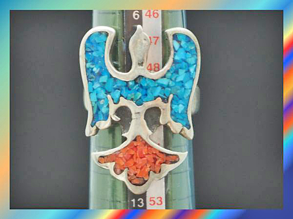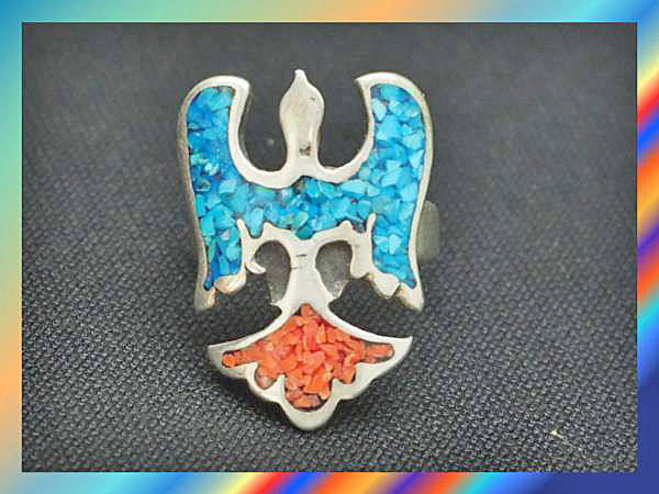 ※インディアンジュエリーの偽物が出回っていますが、インディアンジュエリーと名乗れるのはアメリカの法律では【アメリカインディアン作家による作品】のみで、この作品は本物のインディアンジュエリーです。