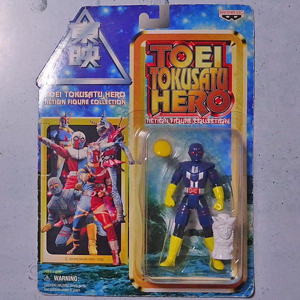□バンプレストのプライズ景品「TOEI TOKUSATSU HERO ACTION FIGURE COLLECTION」の「ロボット刑事」のKです。9センチくらいの大きさでハンチング帽とマザーのディフォルメフィギュアが付いています。 |