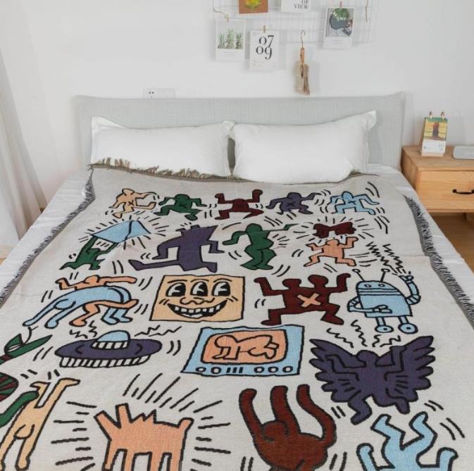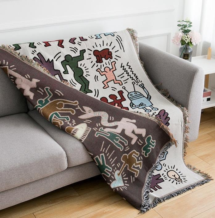 可愛い多機能ソファカバー マルチカバーフリンジ付き 毛布 ブランケットベッド 洗える 四季通用 北欧風 180*180㎝ x248