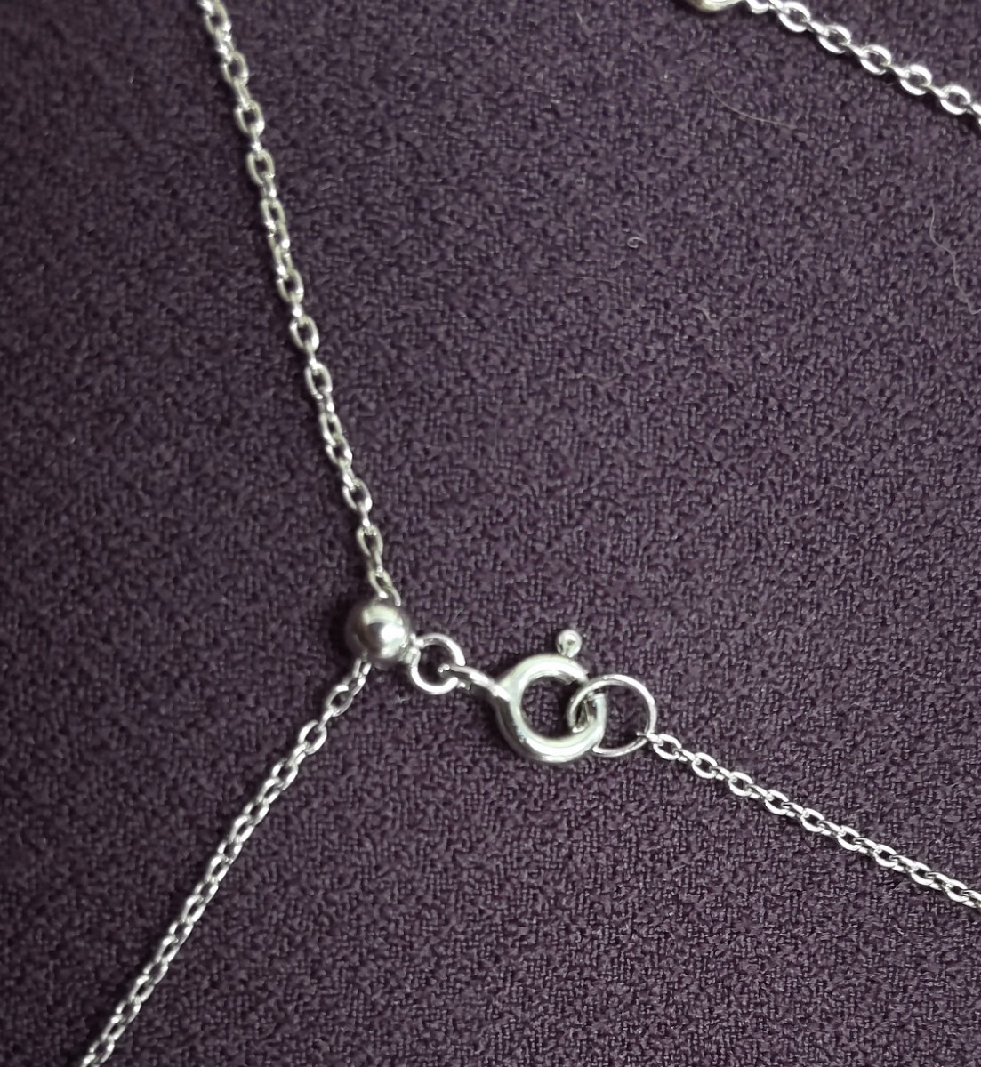 長さ調節可能のネックレスです、ジルコニア9個つき、バチカンの横の丸い珠を押さえチェーンの長さが調節出来ます 、最長長さ49cm 素材は金やプラチナでは有りません 中古美品