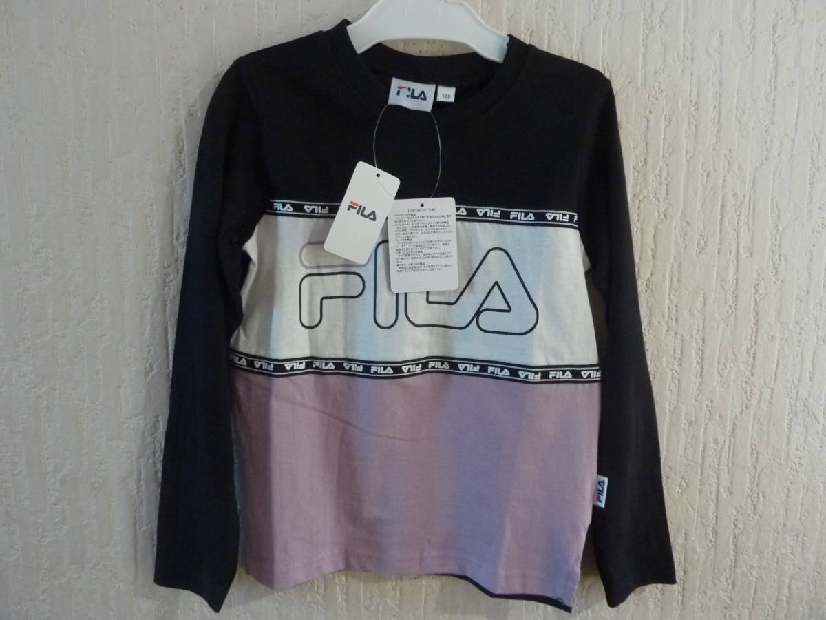 ★FILA☆フィラ BIGロゴ キッズTシャツ【FILAライン付】黒&白&薄紫★綿100%着心地抜群★キッズサイズ120(男女兼用)★新品未使用タグ付★