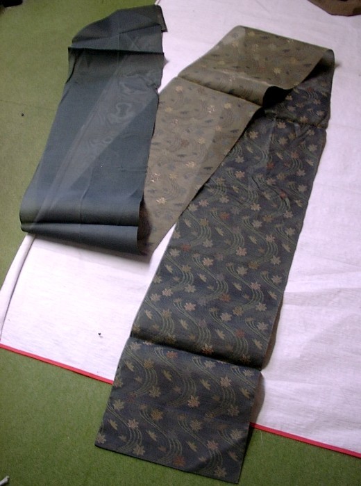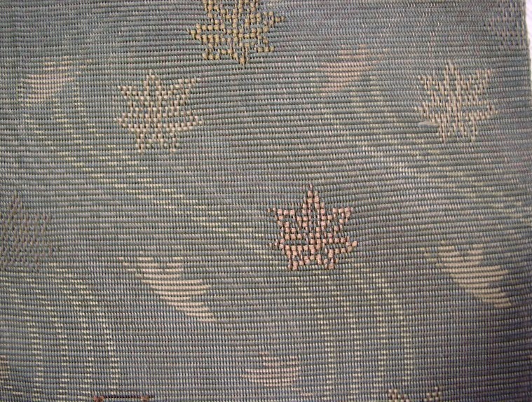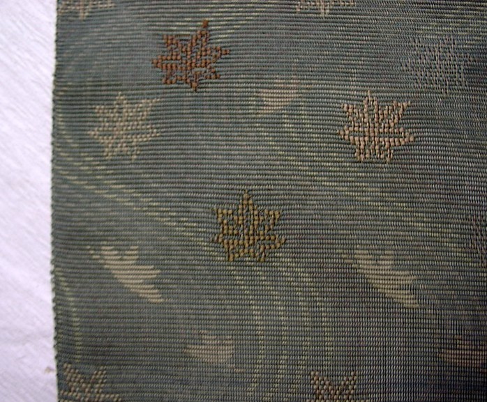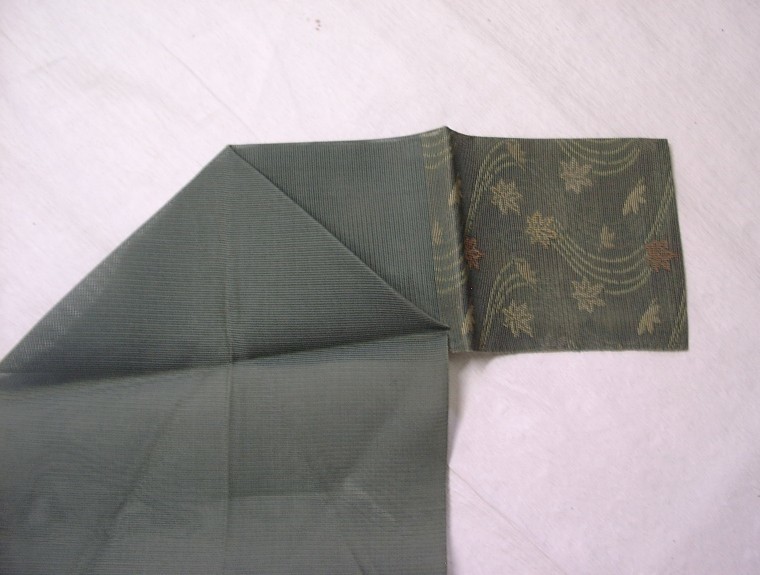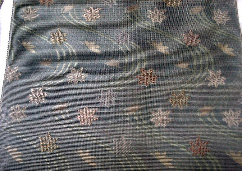 | □ | 正絹。 深い老竹色の絽地に楓、流水が織り込まれています。 かがりで芯はございません。 懐古調の装いができます。 コレクション、小物細工、パッチワーク、キルト、洋服へのリホームなど他の用途などにも使用できます。 実物の色は3枚目の写真が近いです。 この商品はアンティークにご理解のあるお客様にお勧めする商品です。初心者の方、アンティークの経験の無い方、神経質な方は入札をお控えください。 |