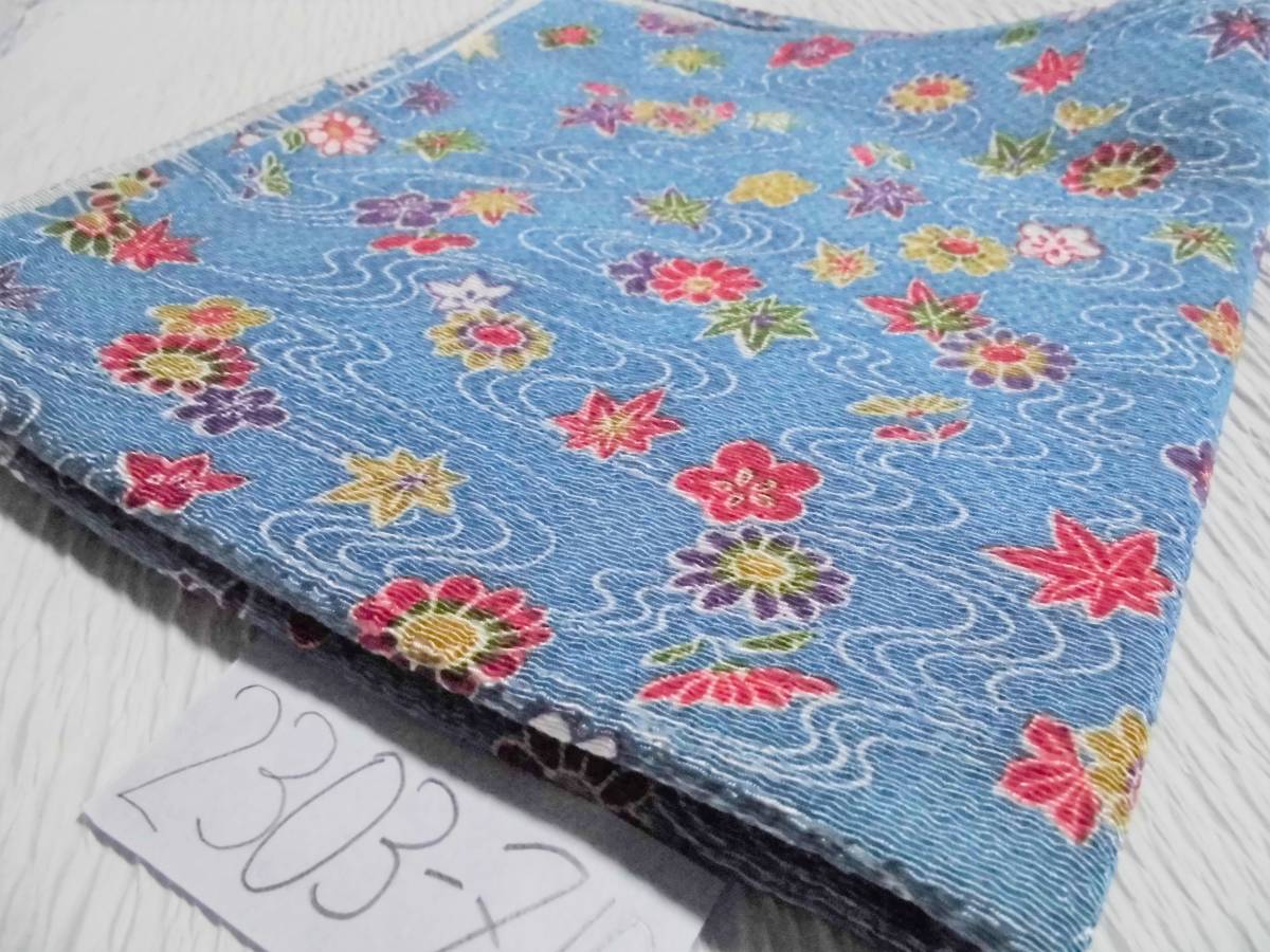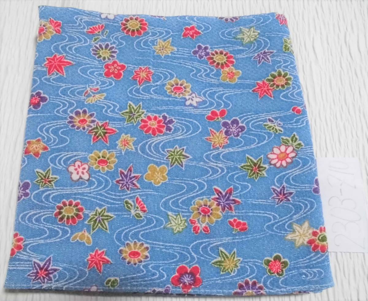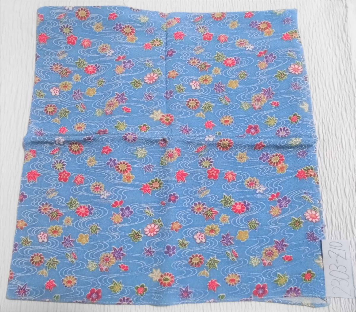 きれいなブルー地に流水、紅葉、菊、梅等が染められた縮緬の風呂敷です。