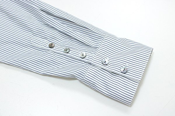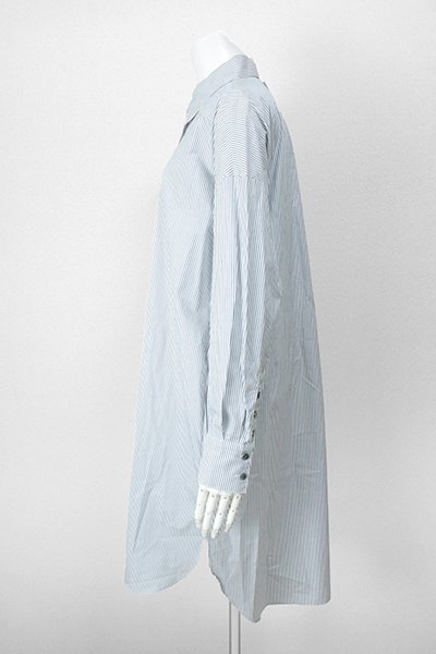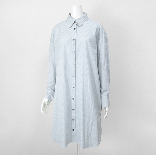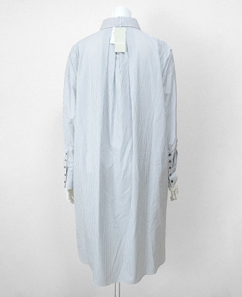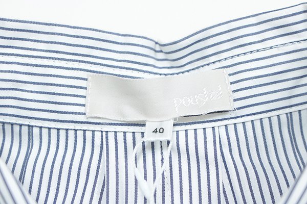★未使用 poushal ◆ ストライプ シャツ ワンピース ホワイト/ブルー 40サイズ (下げ札付き) 長袖 ロング ポーシャル ◆ZX20