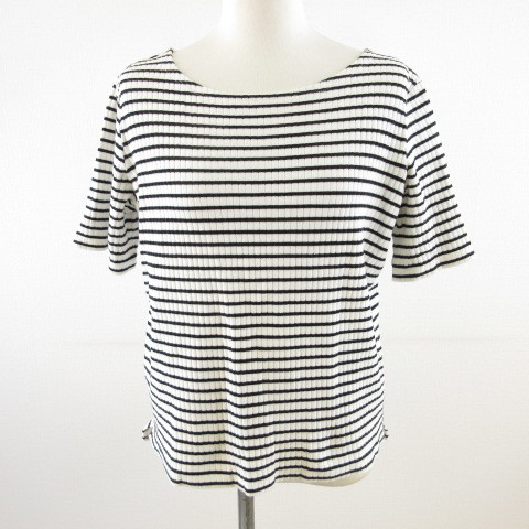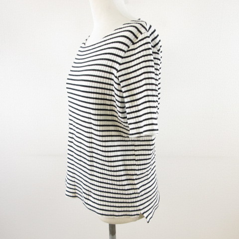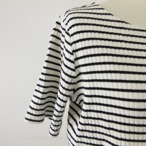 グローブ grove カットソー 五分袖 ボーダー ストレッチ 白 黒 M *T54 レディース