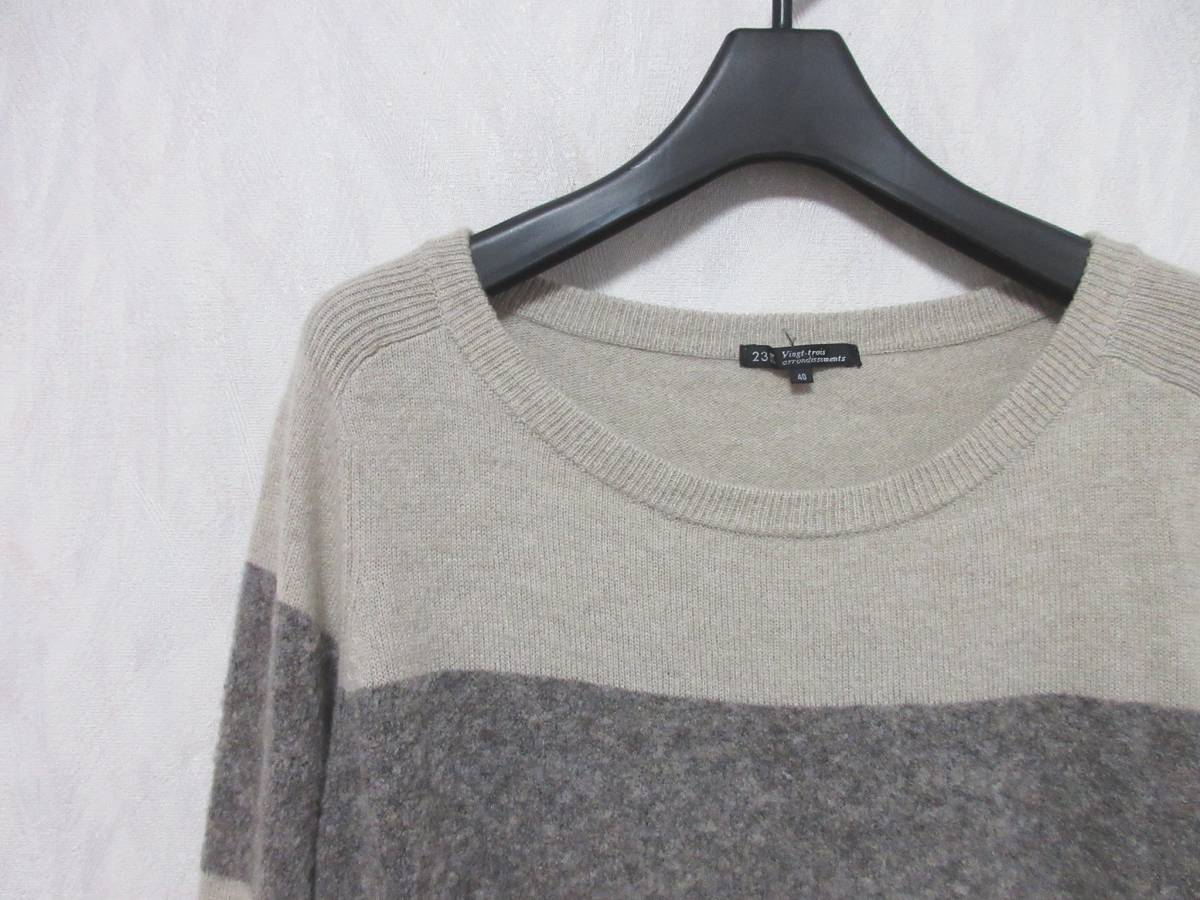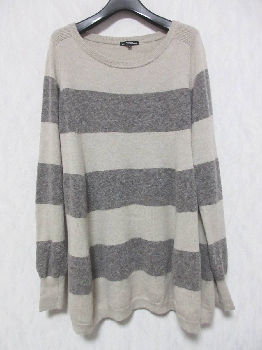 23区 ウール ボーダー ロング ニット セーター ベージュ系 40 irmri 亥3058