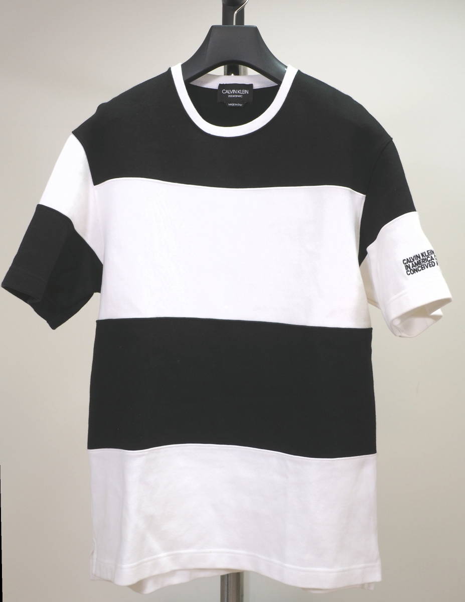 CALVIN KLEIN 205W39NYC カルバンクライン205W39NYC 18SS切り替え厚手カットソーM黒×白 Italy製 ラフシモンズデザイン