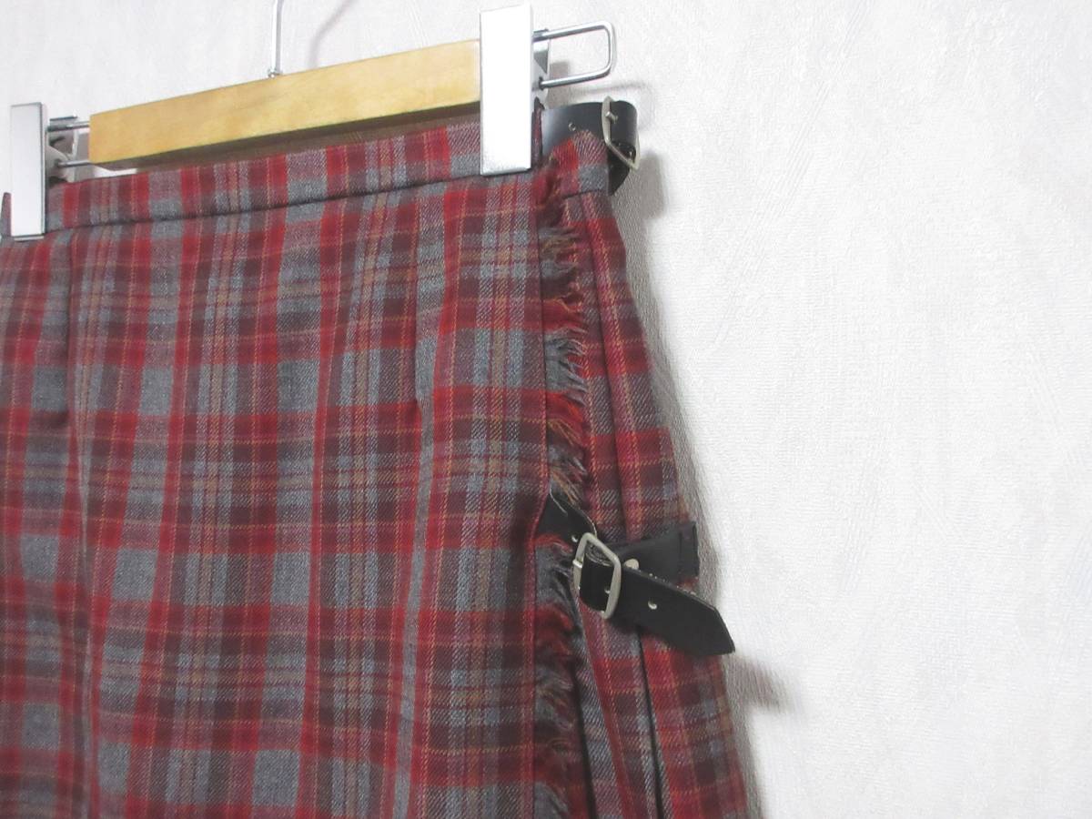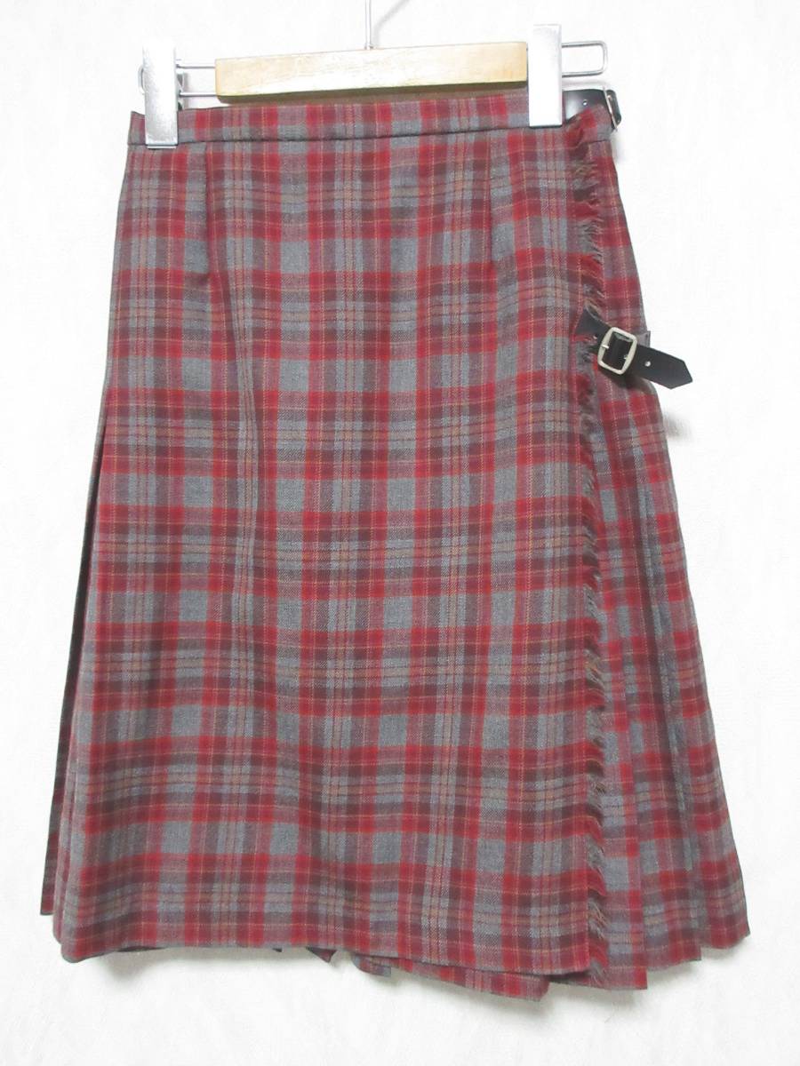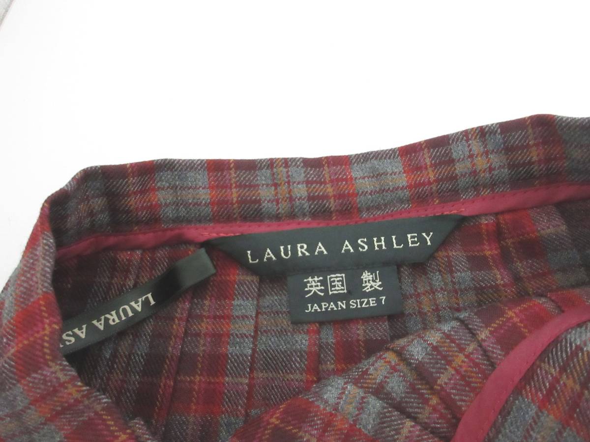 英国製 ローラアシュレイ LAURA ASHLEY ウール 巻きスカート プリーツ グレー エンジ 7 irmri 亥3146