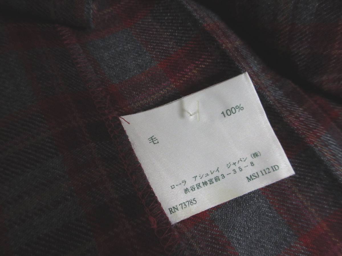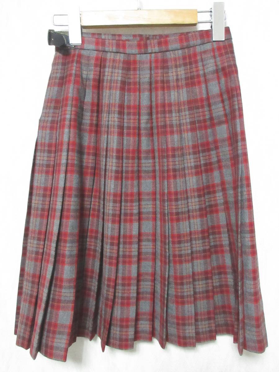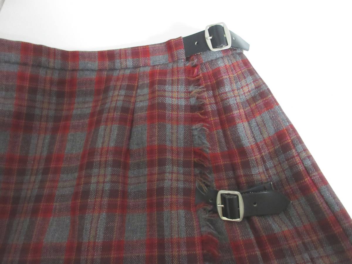 英国製 ローラアシュレイ LAURA ASHLEY ウール 巻きスカート プリーツ グレー エンジ 7 irmri 亥3146