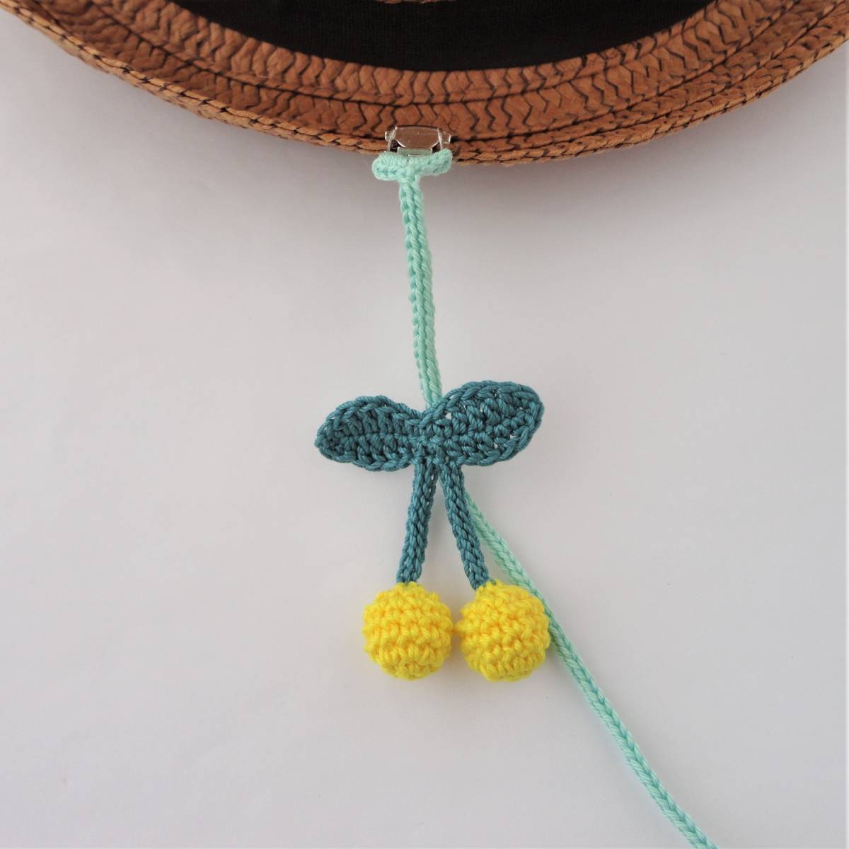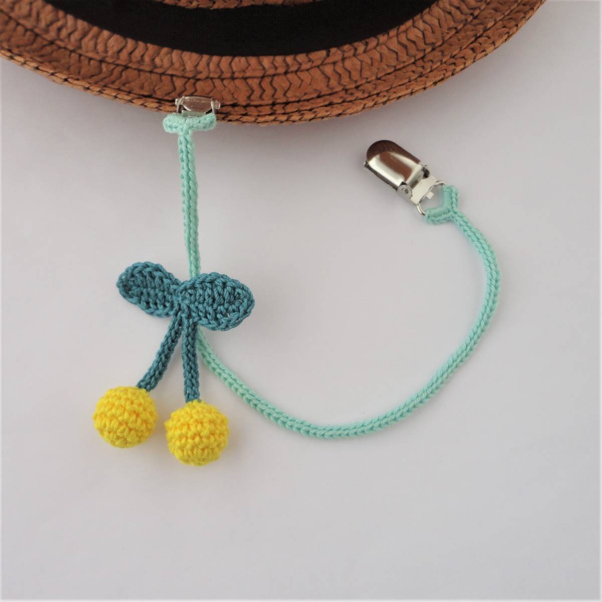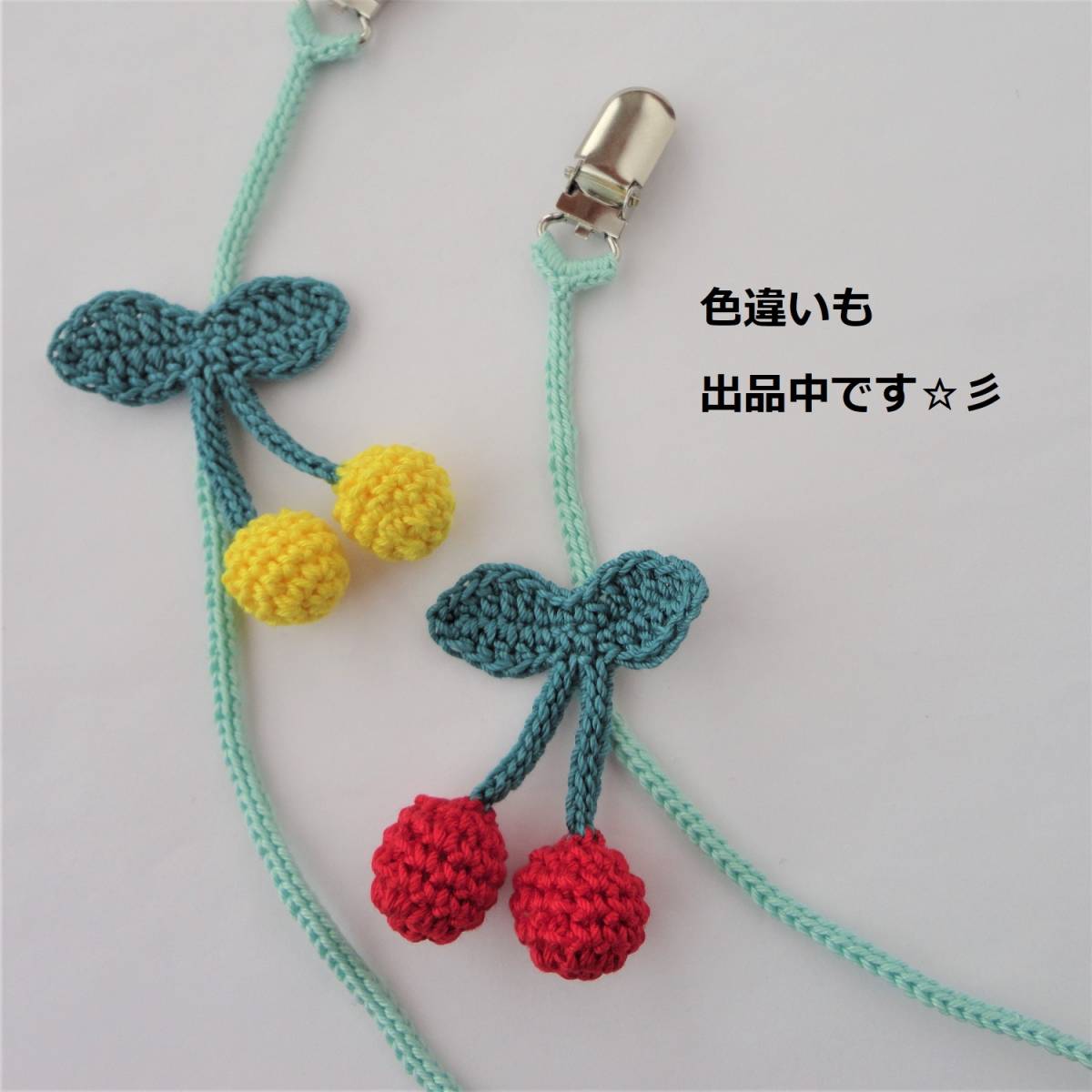 さくらんぼの帽子クリップ*マルチクリップ*ベビークリップ*チェリー*YE*レース編み*ハンドメイド*b33