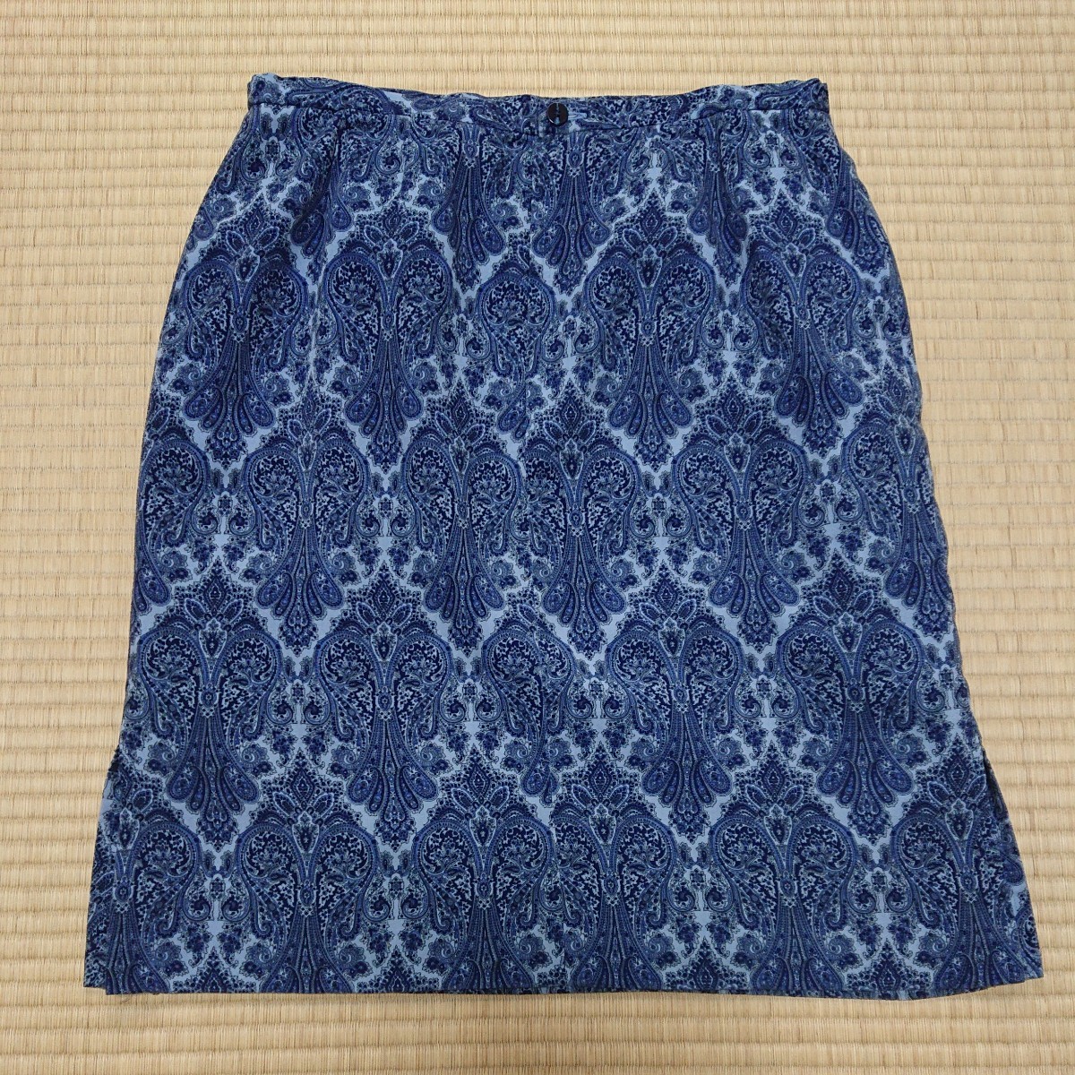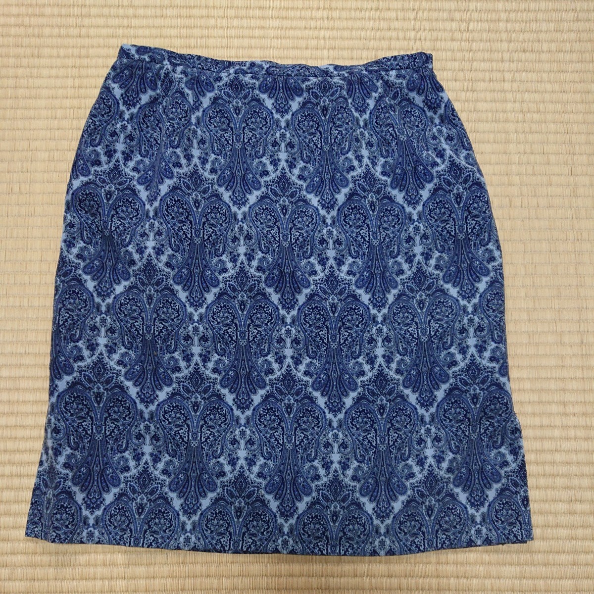 幾何学模様なブルーのタイトスカートです。