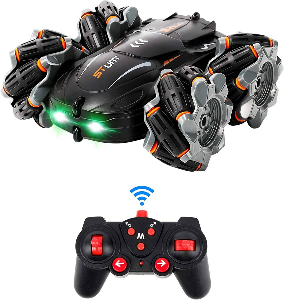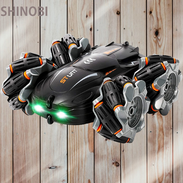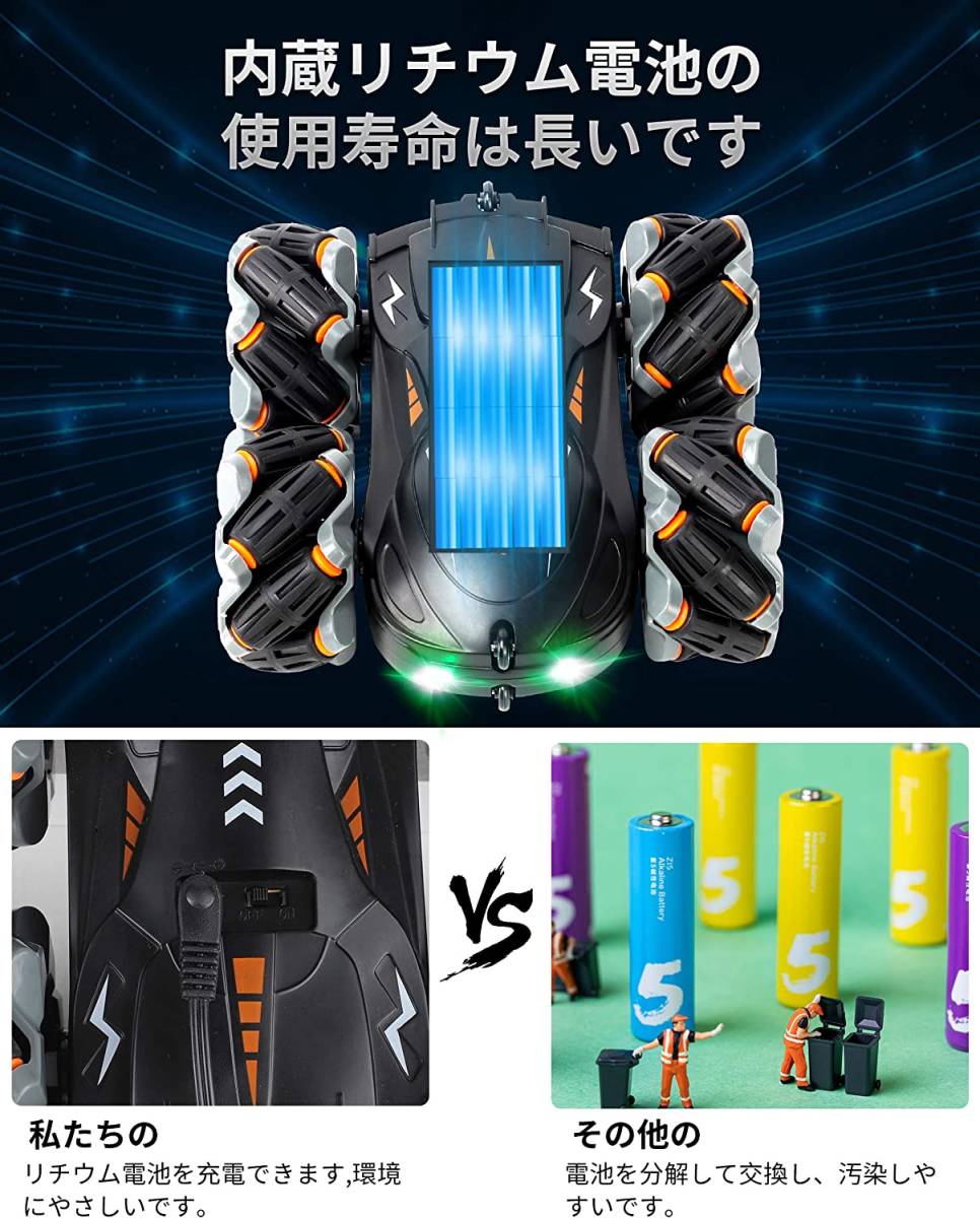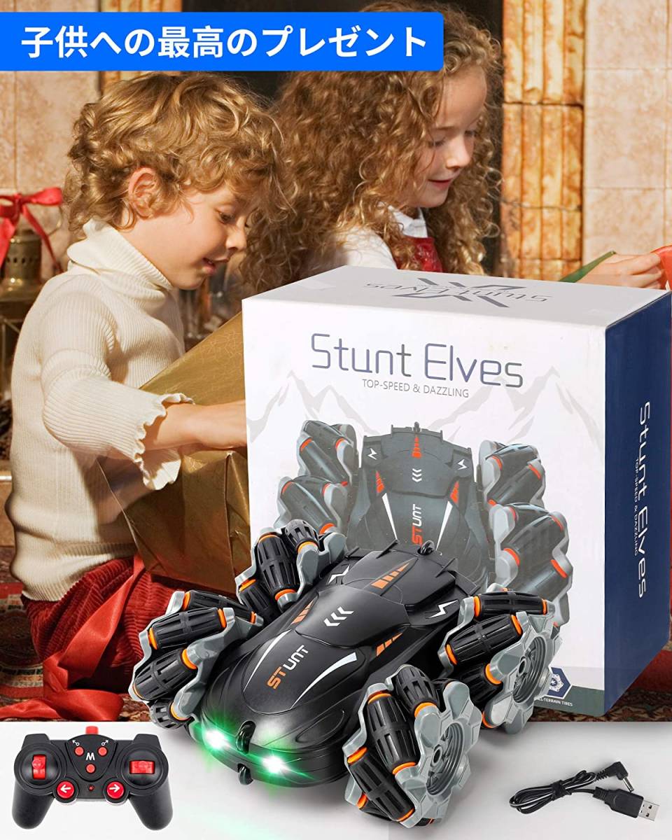 こども向けスタントラジコンカー!分解不要で充電可能 360度回転やメカナムホイールデザインで両面走行可能 四輪駆動オフロード車 おもちゃ