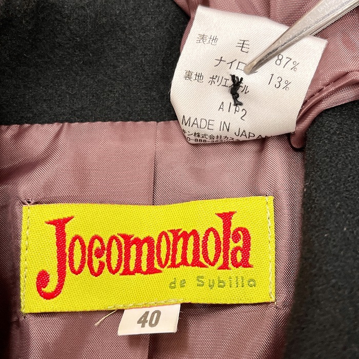 | 商品タイトル | Jocomomola - 40 レディース 若干薄手 メルトン系 起毛 ステンカラージャケット ハーフコート ボタン留め 長袖 日本製 黒(裏地:茶系) 黒 |