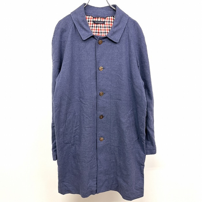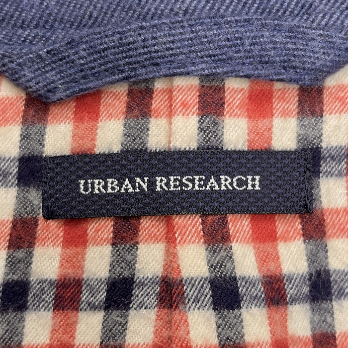 商品タイトル | URBAN RESEARCH - L メンズ ネルシャツ生地 ステンカラーコート チェック柄裏地 微起毛 長袖 綿100% ネイビー×レッド×ホワイト 紺 |