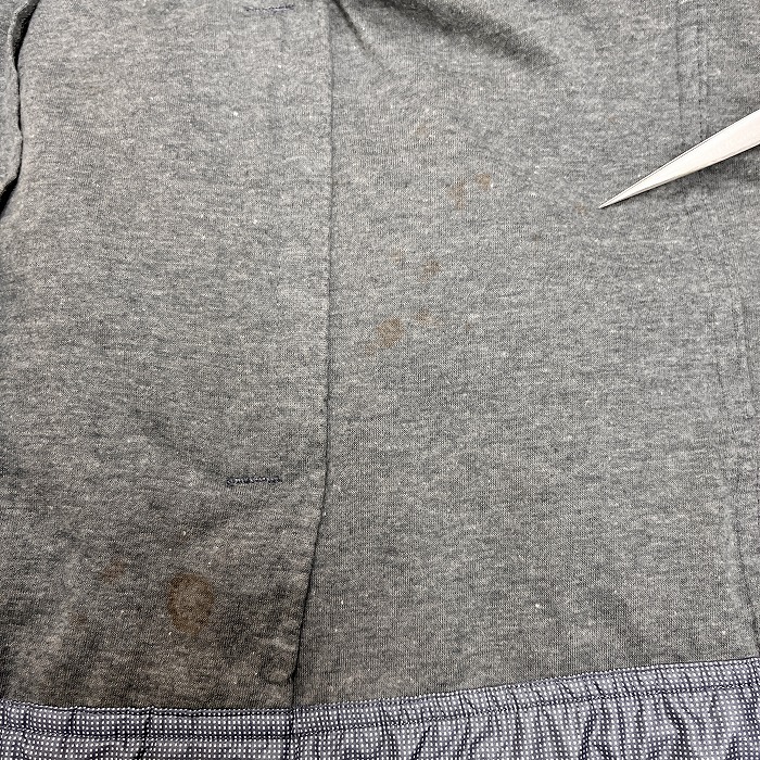 商品状態・ディテールなど | (※実測寸法など、多少の誤差はご容赦下さい。) (※商品は全て畳んで保管しております。保管による畳み皺などはございます。その点ご了承下さい。) ●気になったダメージの場所と種類: ・所々:- ・全体:- ・内側:裏地に所々シミ ・肩:- ・襟:シミ ・胸:- ・腹部:- ・裾:- ・右袖:- ・左袖:- ・袖口:- ・背中(上):- ・背中(下):- ●その他ディテール:ハイネックフード、フードに調節ゴム、ジップポケット、内ポケット無し ●付属品など:- ●その他:- |