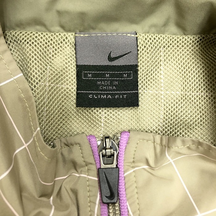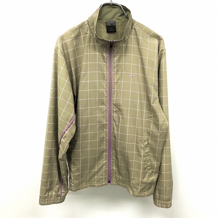 商品タイトル | NIKE ナイキ M レディース 薄手 ジップジャケット メッシュ裏地 チェック 長袖 ポリ100% グリーンカーキ×くすみピンク×パープル 緑系 |