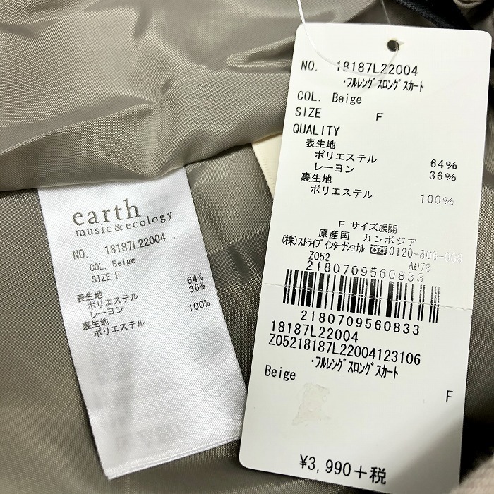 商品タイトル | earth music&ecology - F レディース フルレングスロングスカート ボトムス 裏地付き 微起毛 無地 ウエストゴム 服 - ダークベージュ系 |