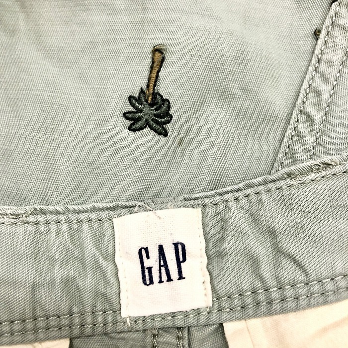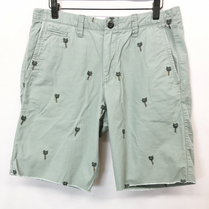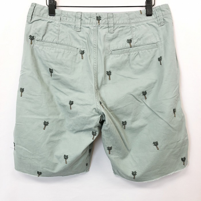 商品タイトル | GAP ギャップ 30 メンズ 男性 テーパードショーツ ショートパンツ ハーフパンツ ヤシの木柄刺繍 アロハ柄 綿100% くすみグリーン系 緑系 |