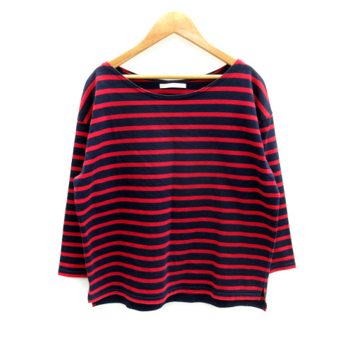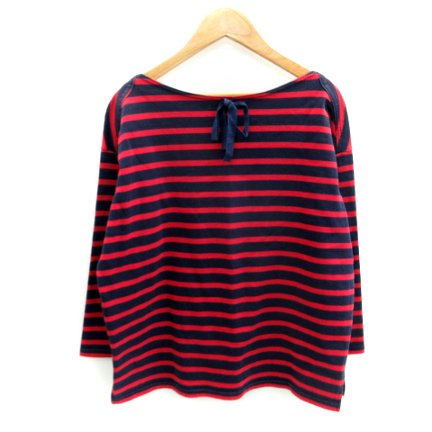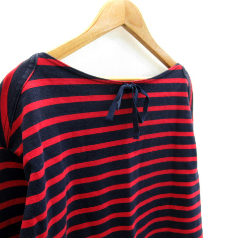アーバンリサーチ ドアーズ カットソー 長袖 ラウンドネック ボーダー柄 オーバーサイズ リボン ONE 紺 ネイビー 赤 レッド /SY25 レディース