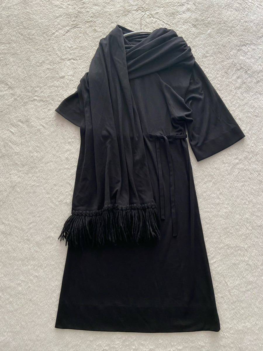 2017年 Maison Martin Margiela size38 イタリア製 ブラック ロングワンピース メゾン マルタン マルジェラ 美品 白タグ マフラー 黒