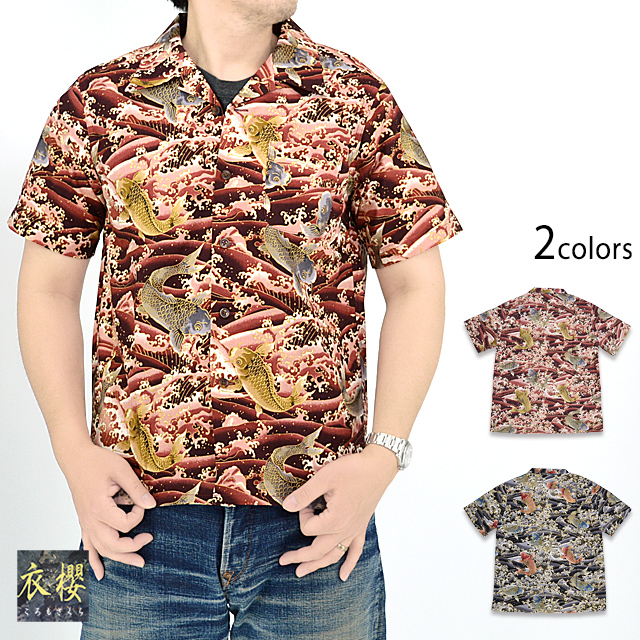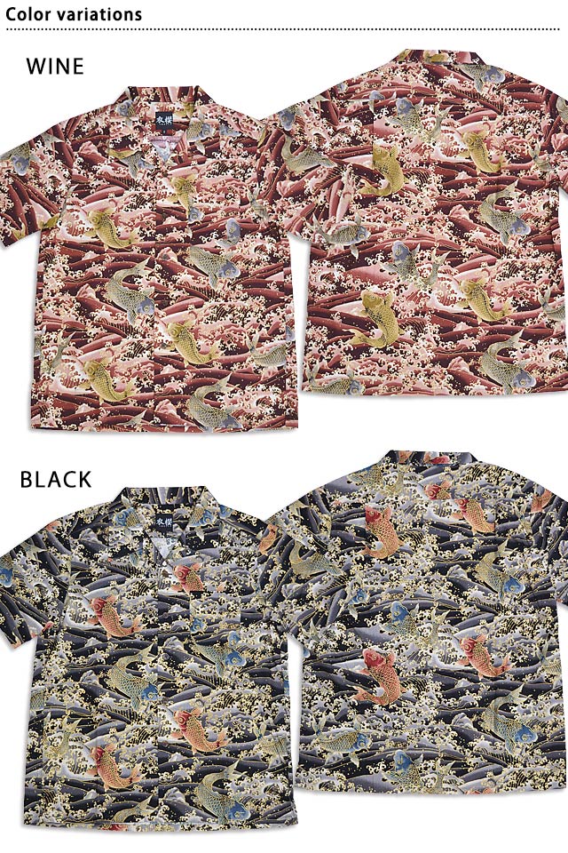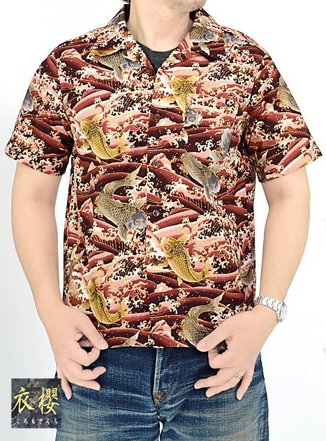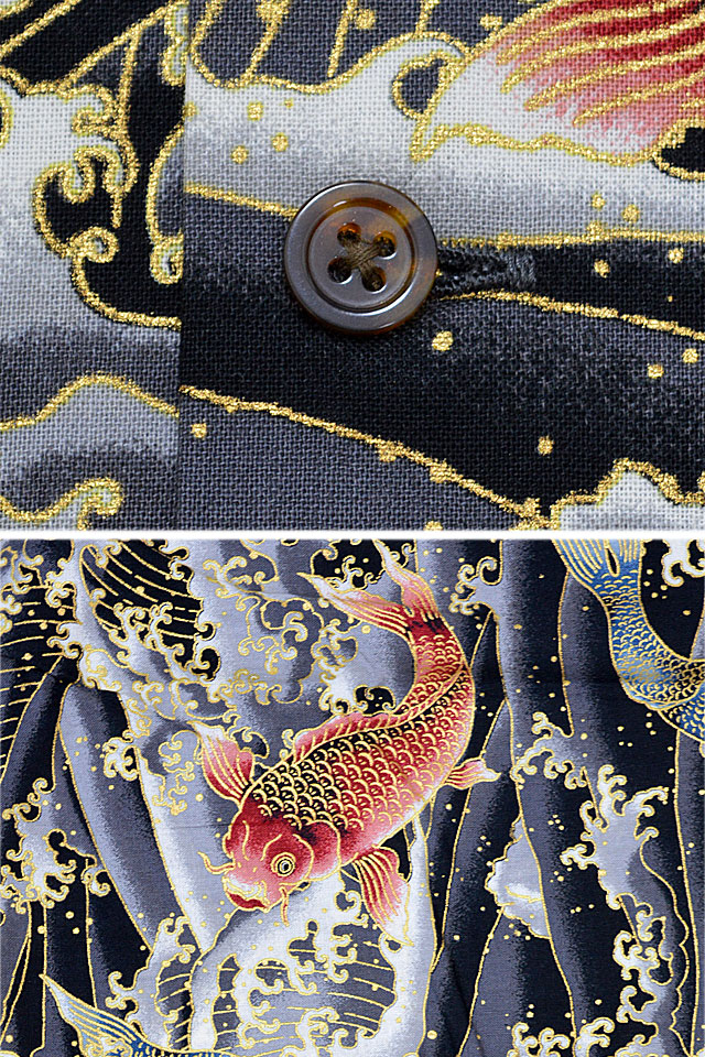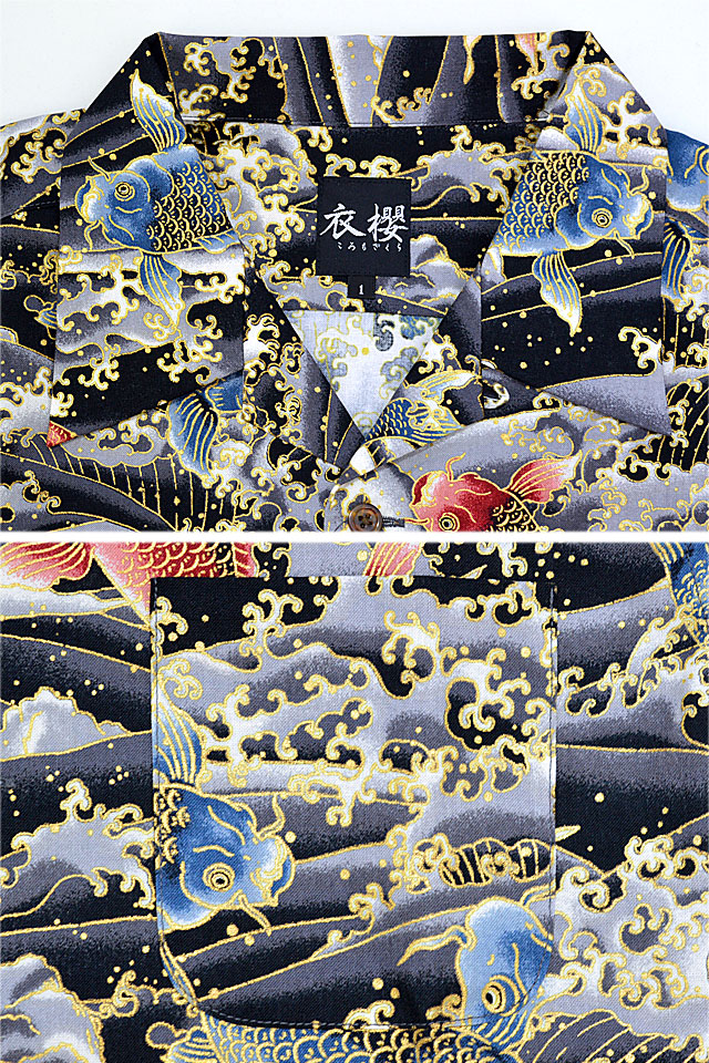 | コットンアロハシャツ「金粉跳ね鯉」◆衣櫻 KSK-M09091 | |||||||||||||||||||||||||